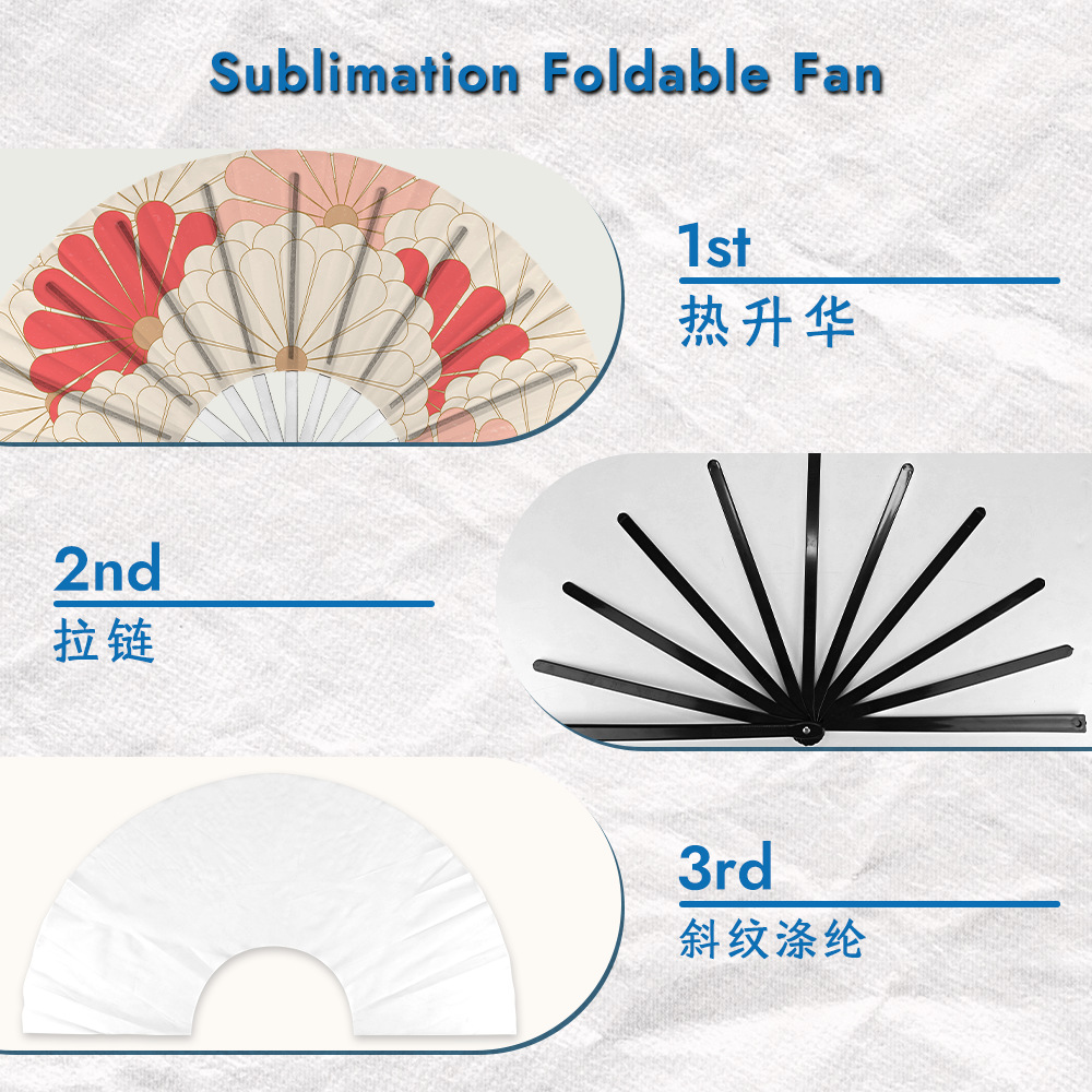 Nuevo producto abanico plegable en blanco poliéster arte moderno abanico plegable DIY sublimación material de transferencia al por mayor