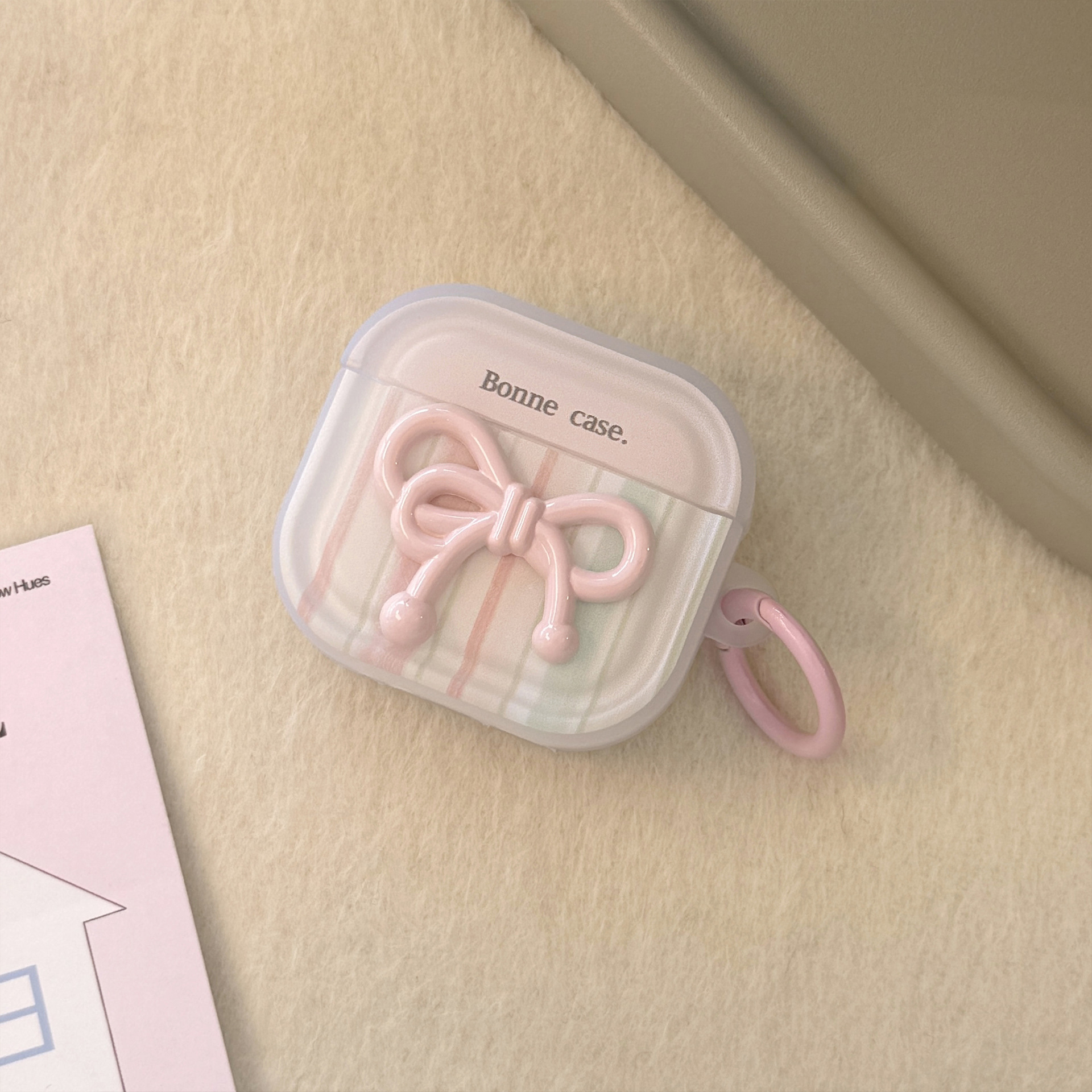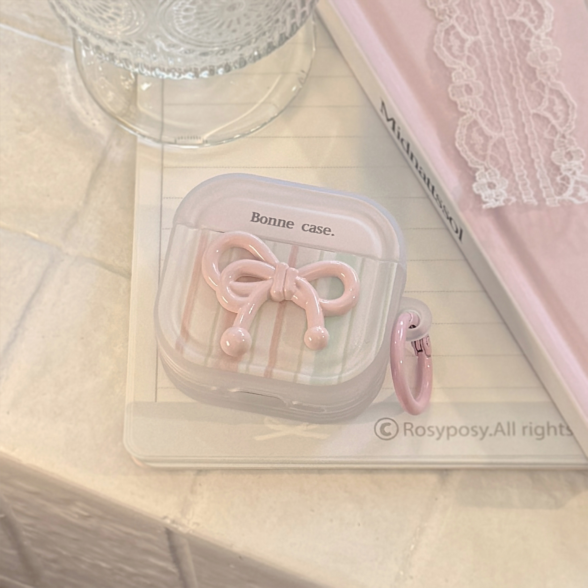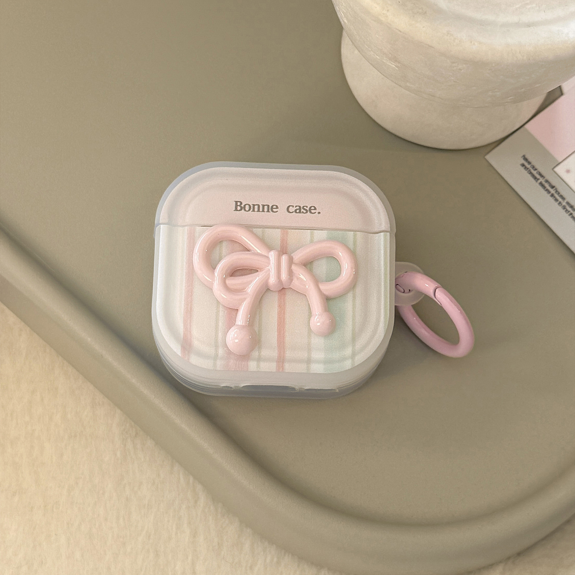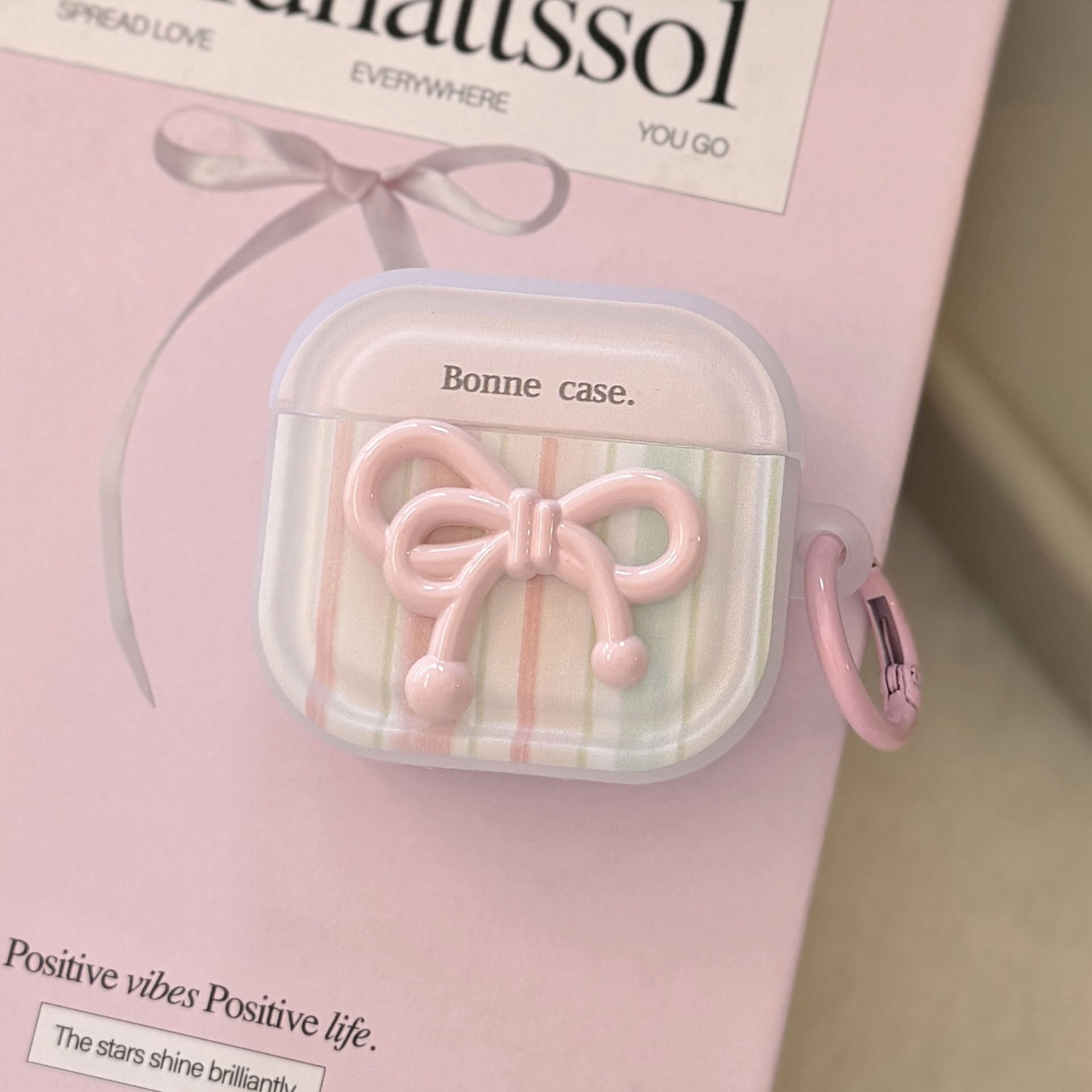 Arco de rayas dulces para Apple Airpods 4 generación cubierta de auriculares Bluetooth Pro2 colgante de polvo 1 transparente 3 generación