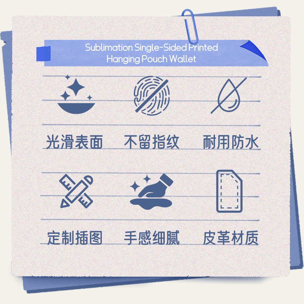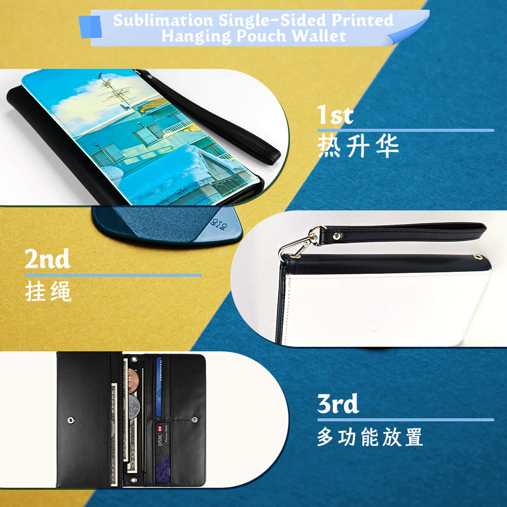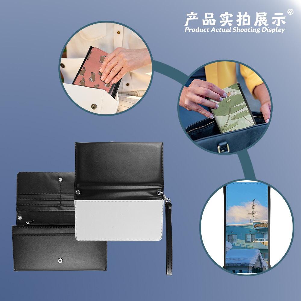 Transferencia térmica impresión de una sola cara colgante de cuero billetera de mujer portátil multi-tarjeta bolsa de cambio