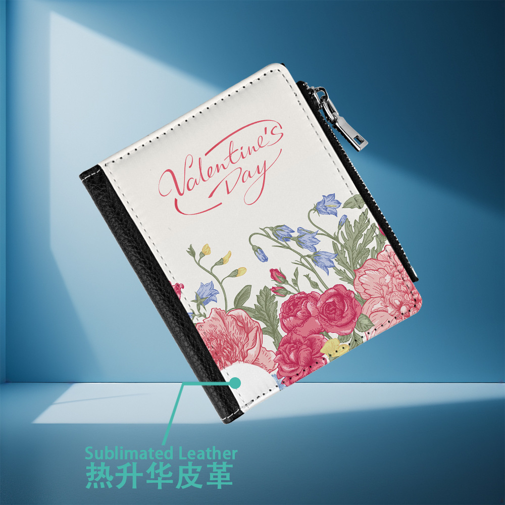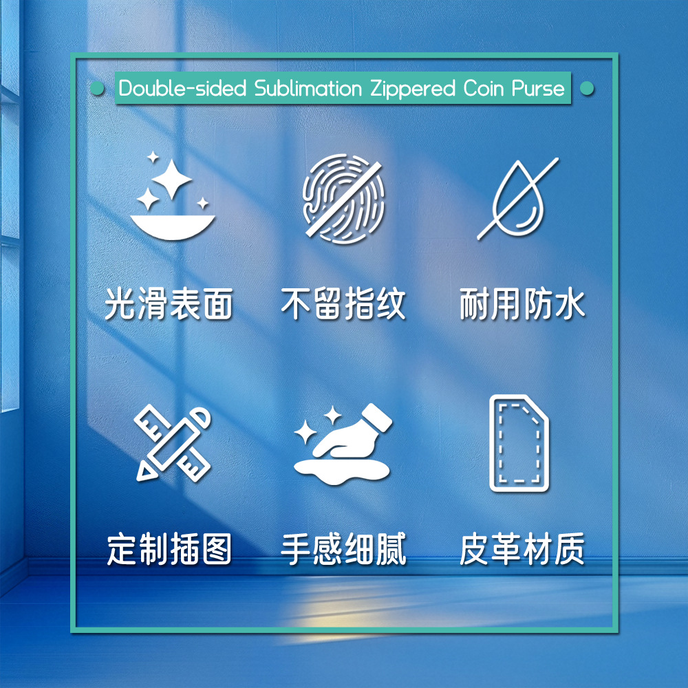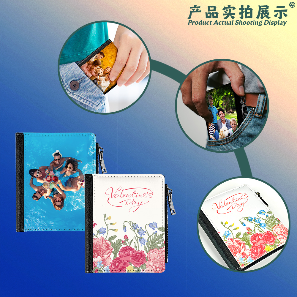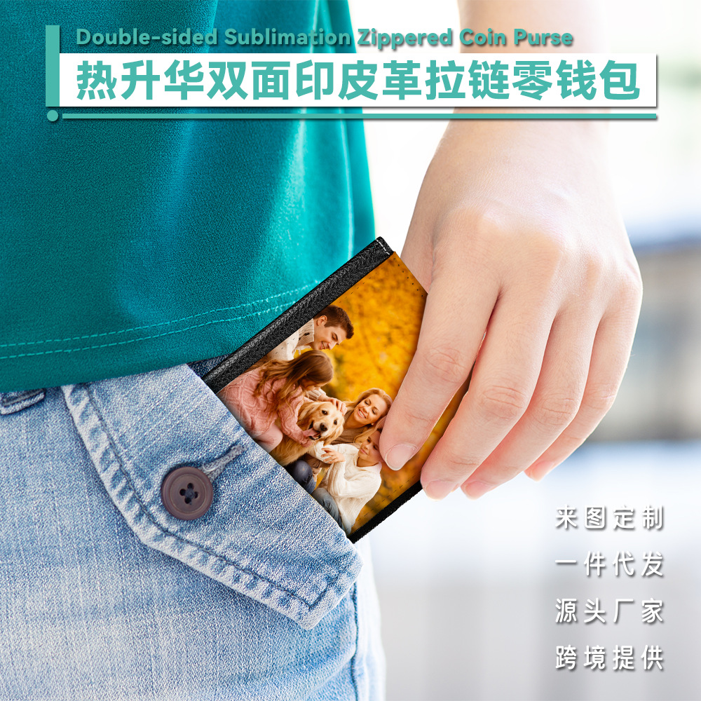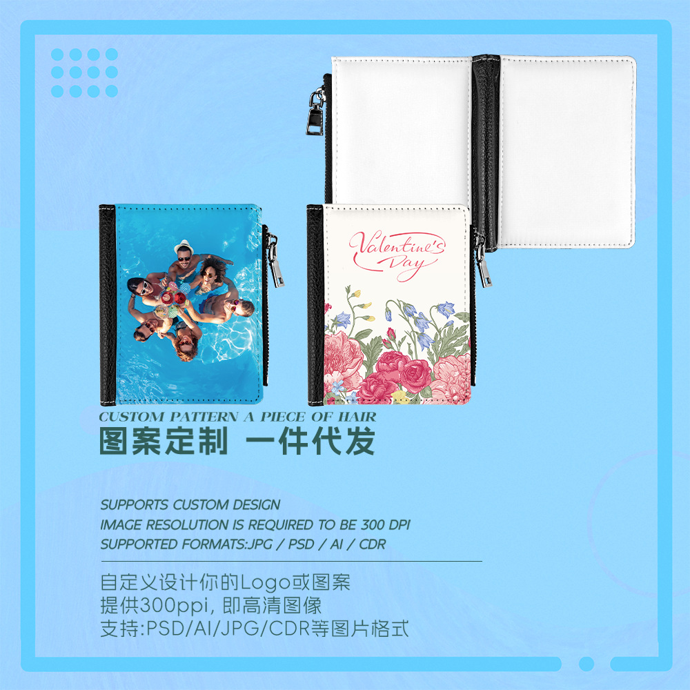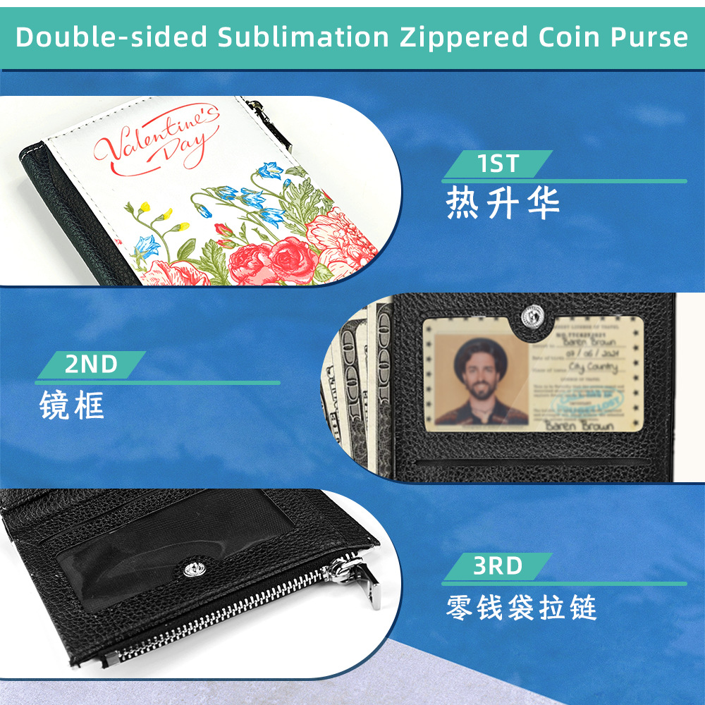 Nuevo producto sublimación cuero cremallera impresión de doble cara monedero tarjeta bolsa de almacenamiento en efectivo