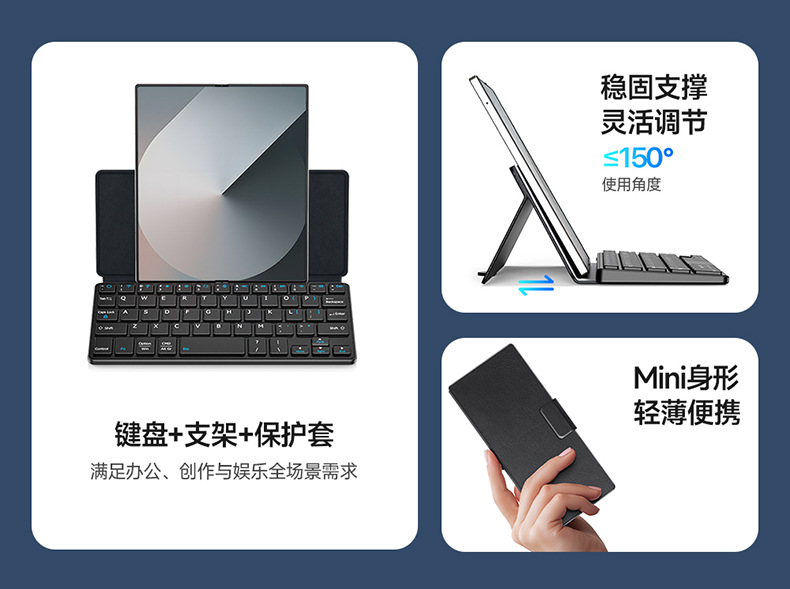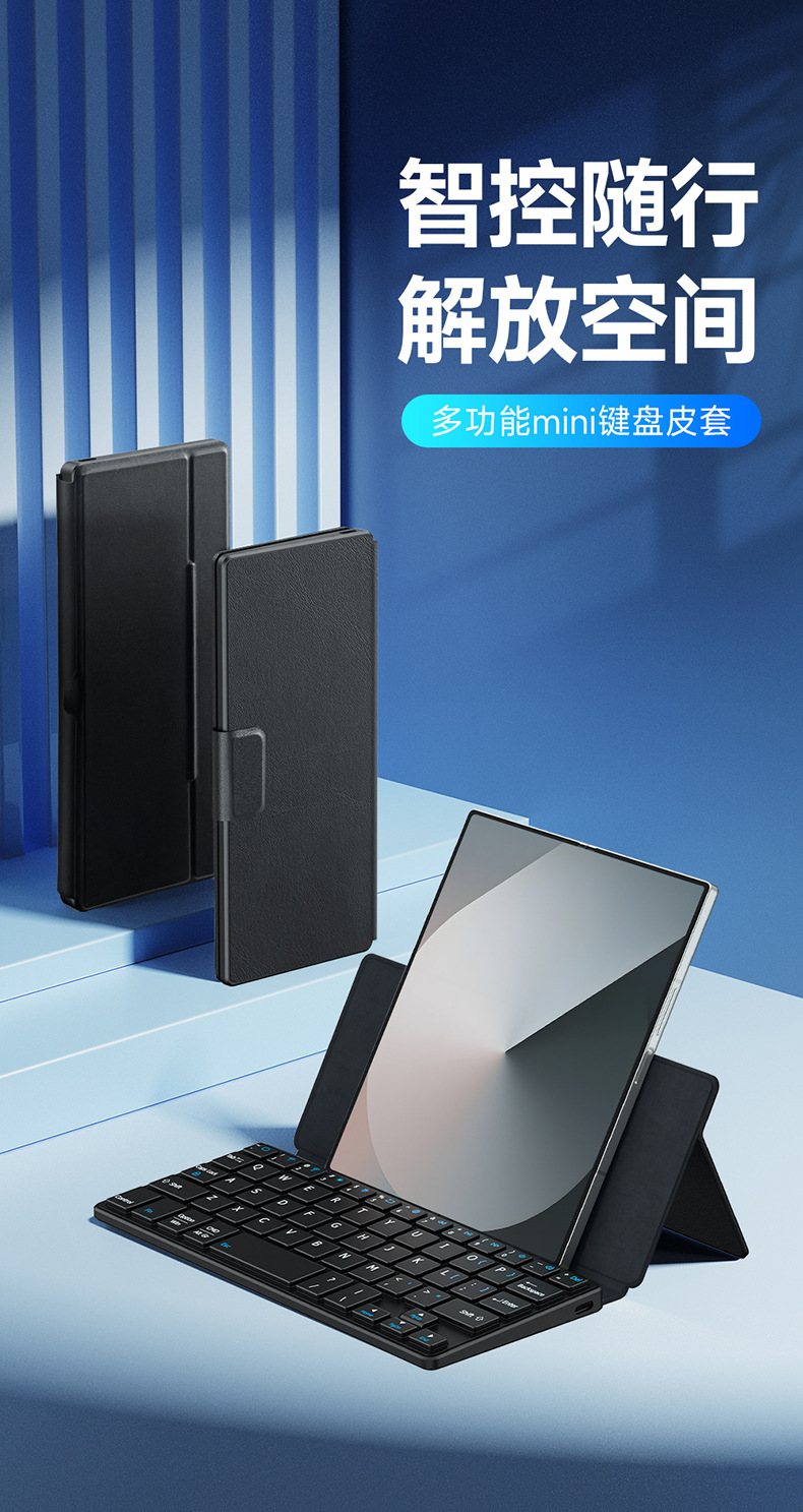 Aplicable Fold pantalla plegable teléfono móvil teclado cubierta de cuero soporte 2 en 1 mini teclado fábrica portátil al por mayor