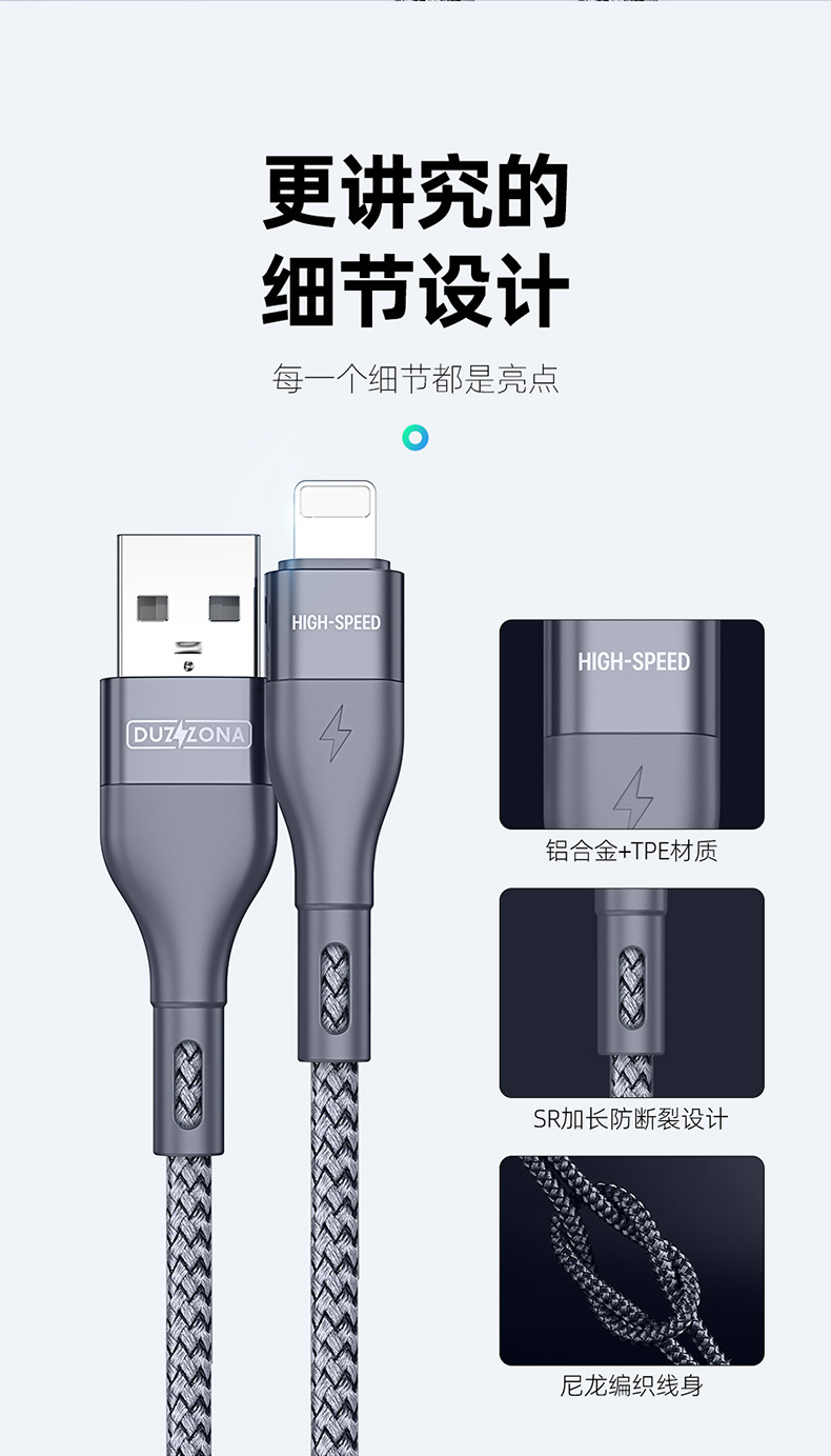 Aplicable a la fábrica del cable de datos del teléfono móvil del iPhone de Apple al por mayor USB al cable de carga trenzado de nylon del relámpago