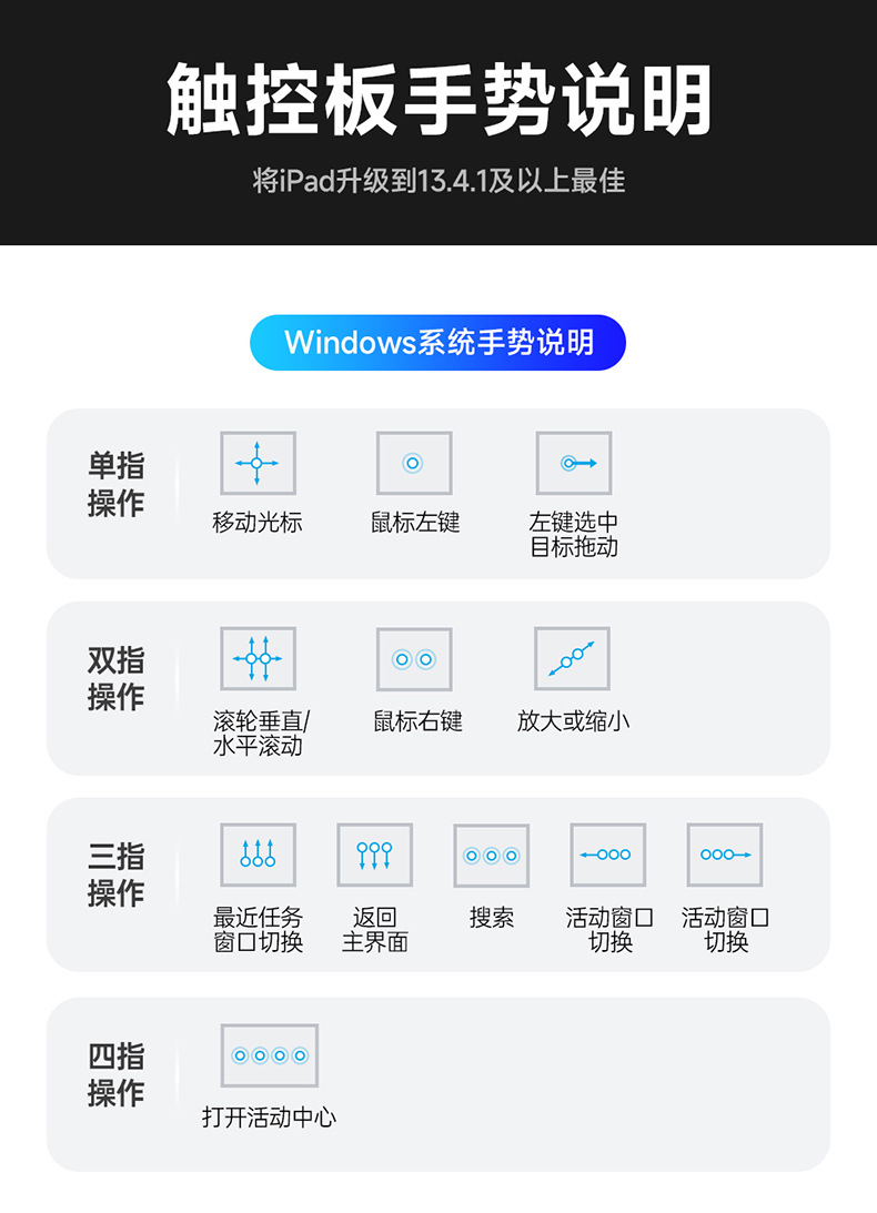 | Color | IPad 7 / 8 / 9 10.2 / iPad air3 / iPad pro 10.5 (2017) negro, iPad Air 6 11 / iPad Air 4 / 5 negro, iPad Pro 11 (2018 / 2020 / 2021 / 2022) negro, iPad 10 (2022) negro, iPad Pro 11 (2024 / 2025), iPad Air 13 / iPad pro 12.9 (2018 - 2022 negro, iPad pro 13 (2024 / 2025) negro |