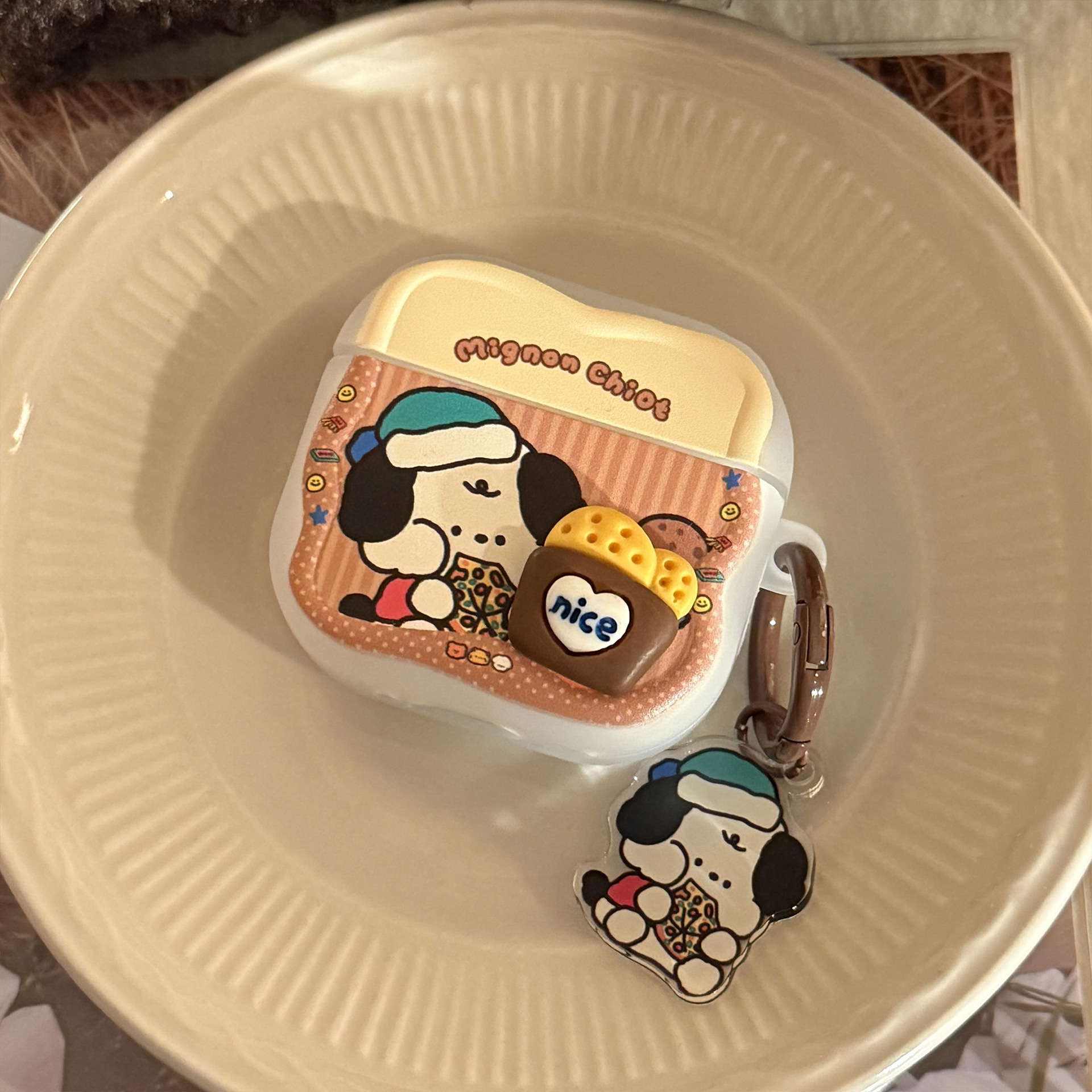 Perro de bolsa de galletas tridimensionales blancas + anillo de perro de pizza de color café