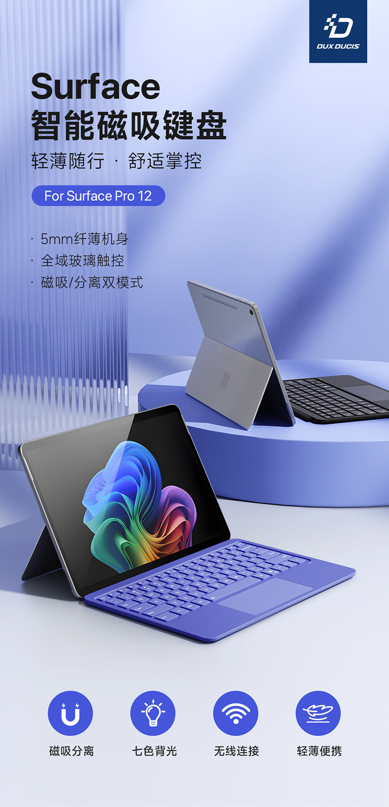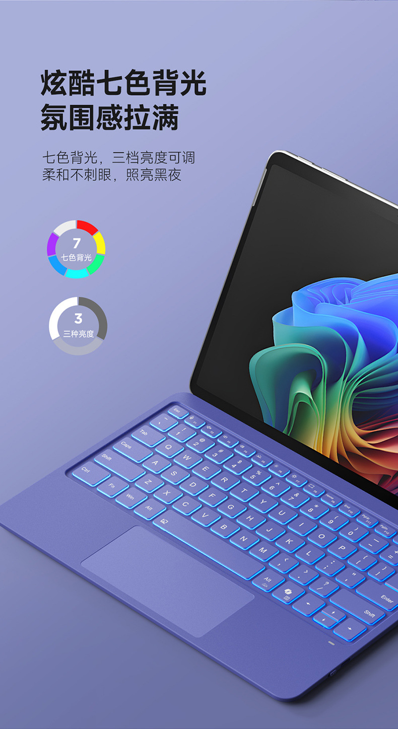 Aplicable Microsoft SurfacePro12 teclado Bluetooth magnético retroiluminado colorido tableta teclado externo al por mayor