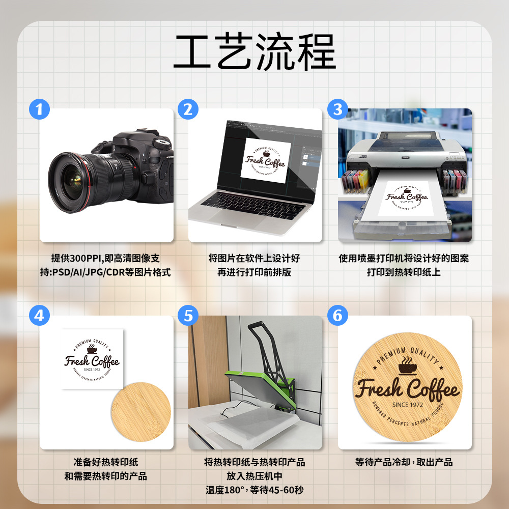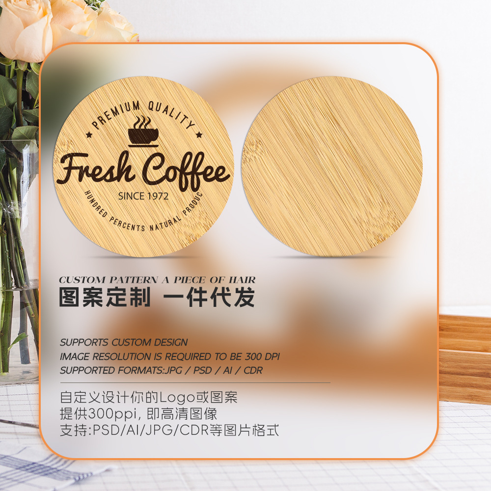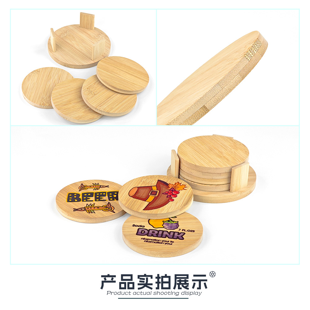 Nuevos productos de transferencia térmica bambú y madera taza cojín material conjunto redondo al por mayor
