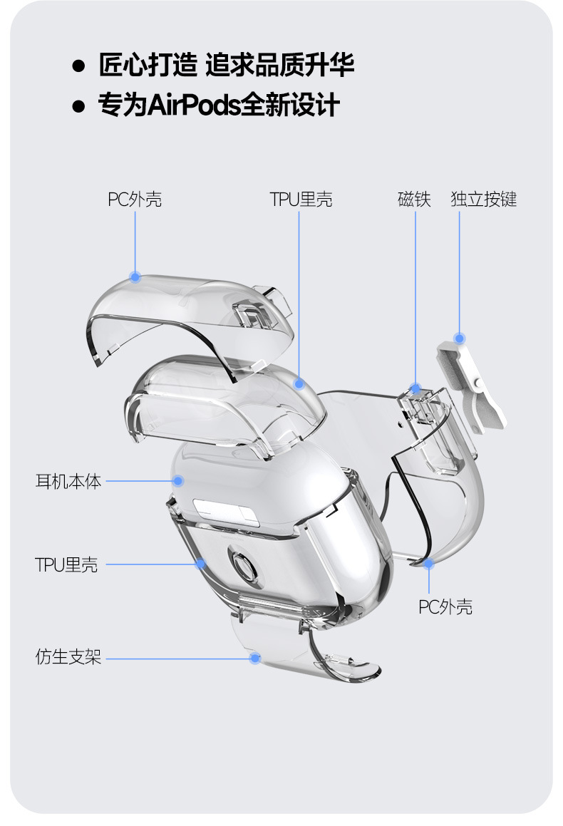 Aplicable Apple AirPods Pro2 estuche de auriculares Bluetooth AirPods4 estuche transparente a prueba de caídas TPU estuche mayorista