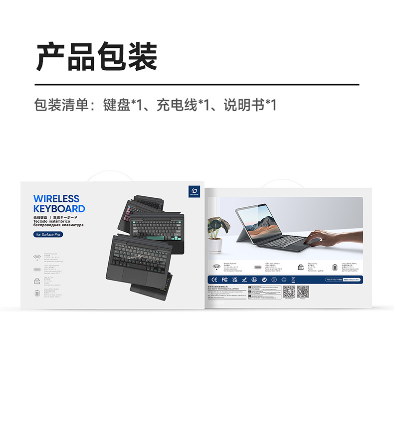 | Tipo de producto | Teclado magnético Surface Pro 11/10/9/8/X con ranura para lápiz |