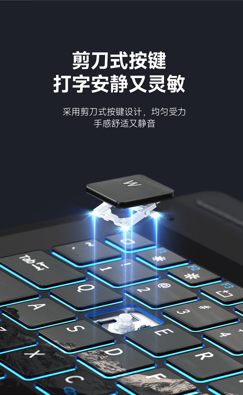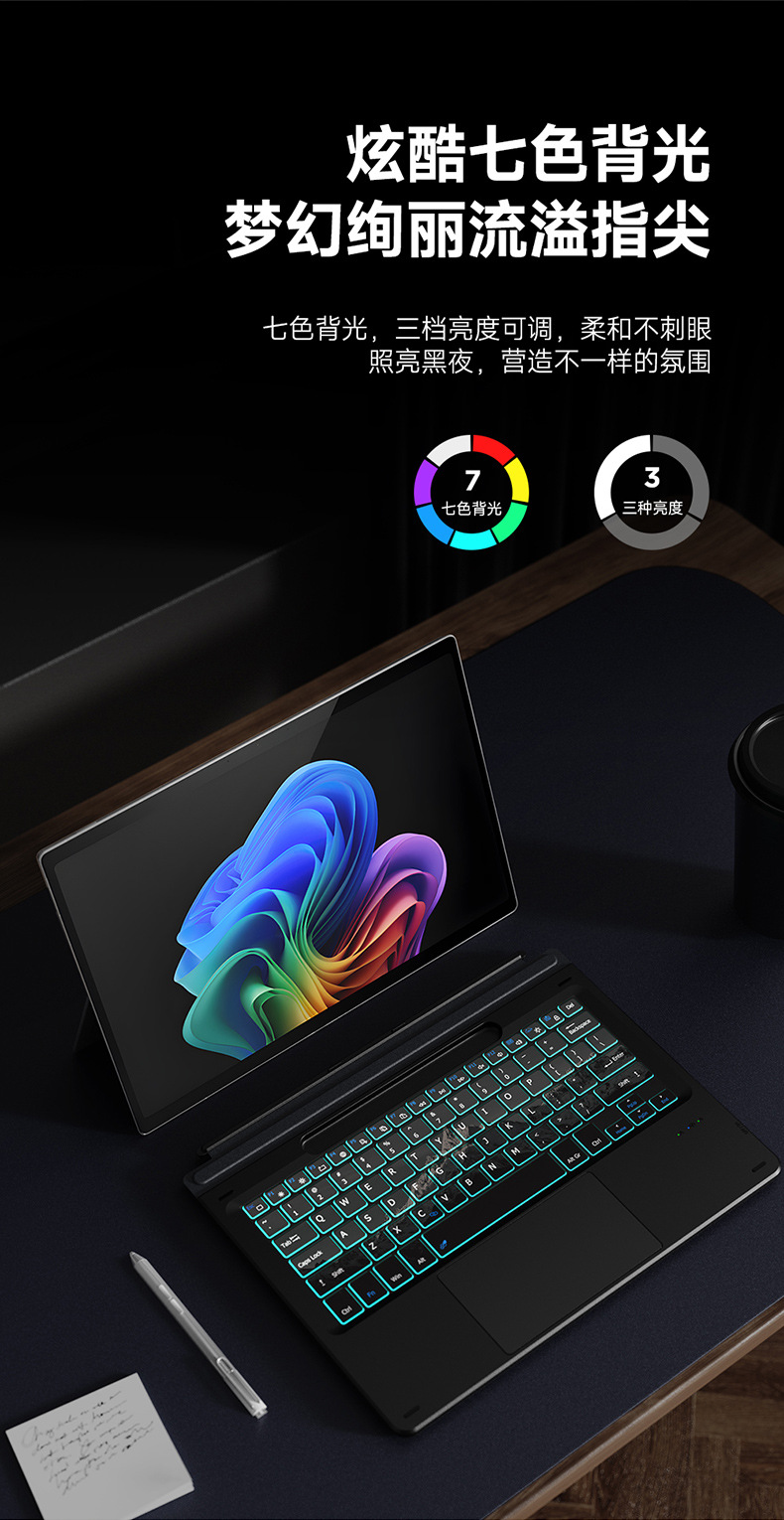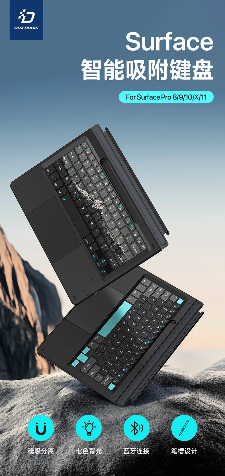Aplicable al teclado inalámbrico magnético Microsoft SurfacePro11, retroiluminación colorida, mapa de montaña de nieve, teclado externo Bluetooth
