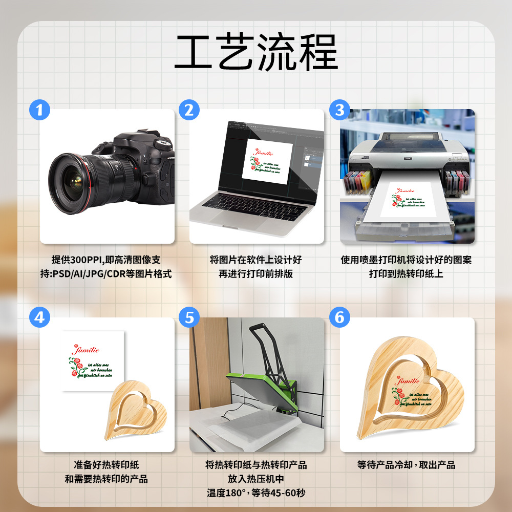 Transferencia térmica amor adornos decoración de madera DLY material al por mayor
