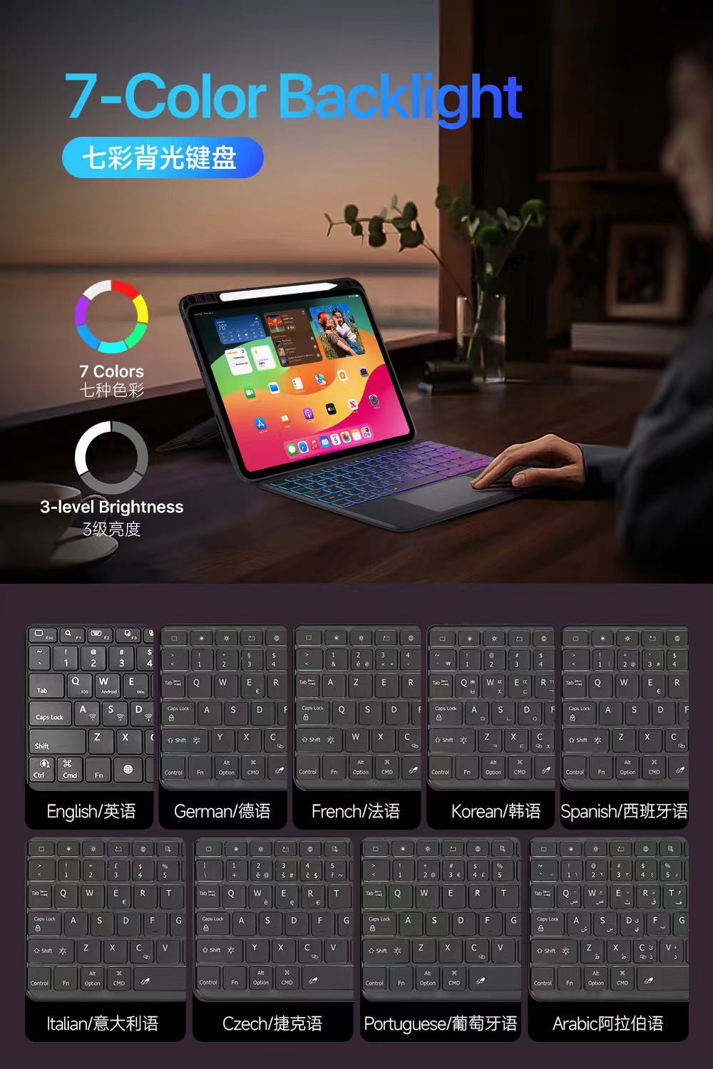 Teclado retroiluminado árabe