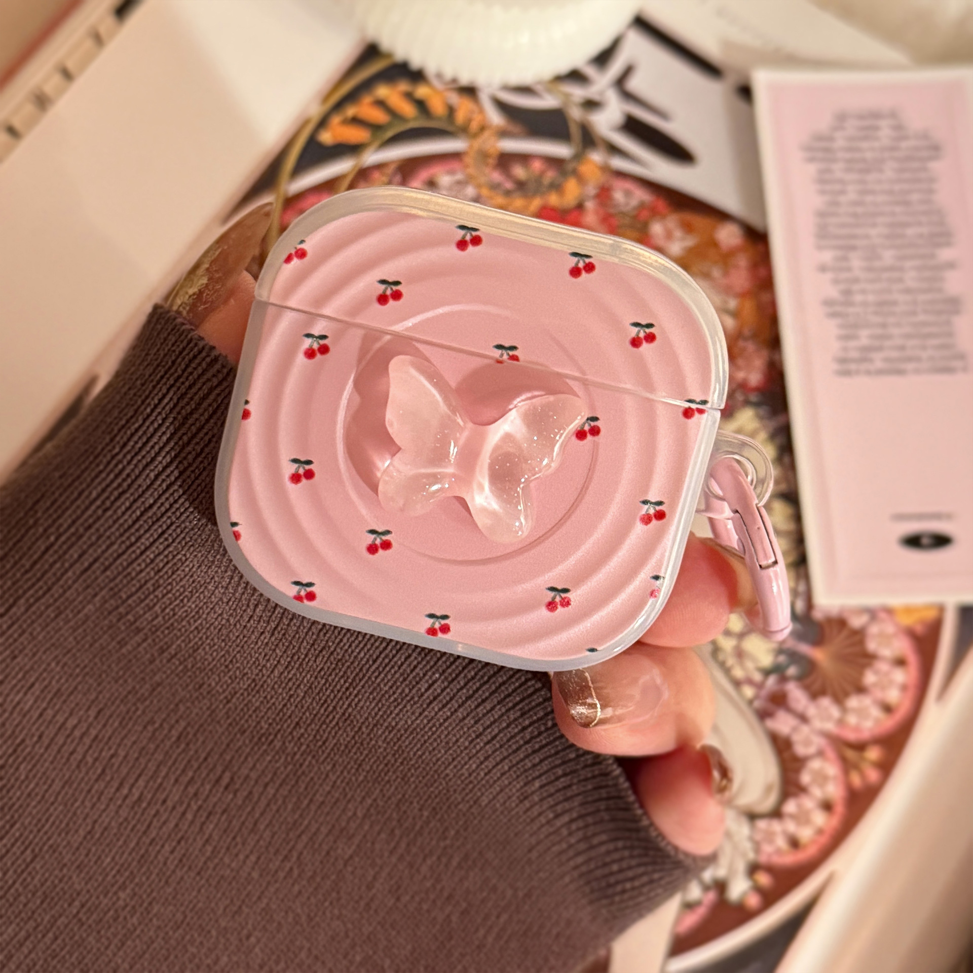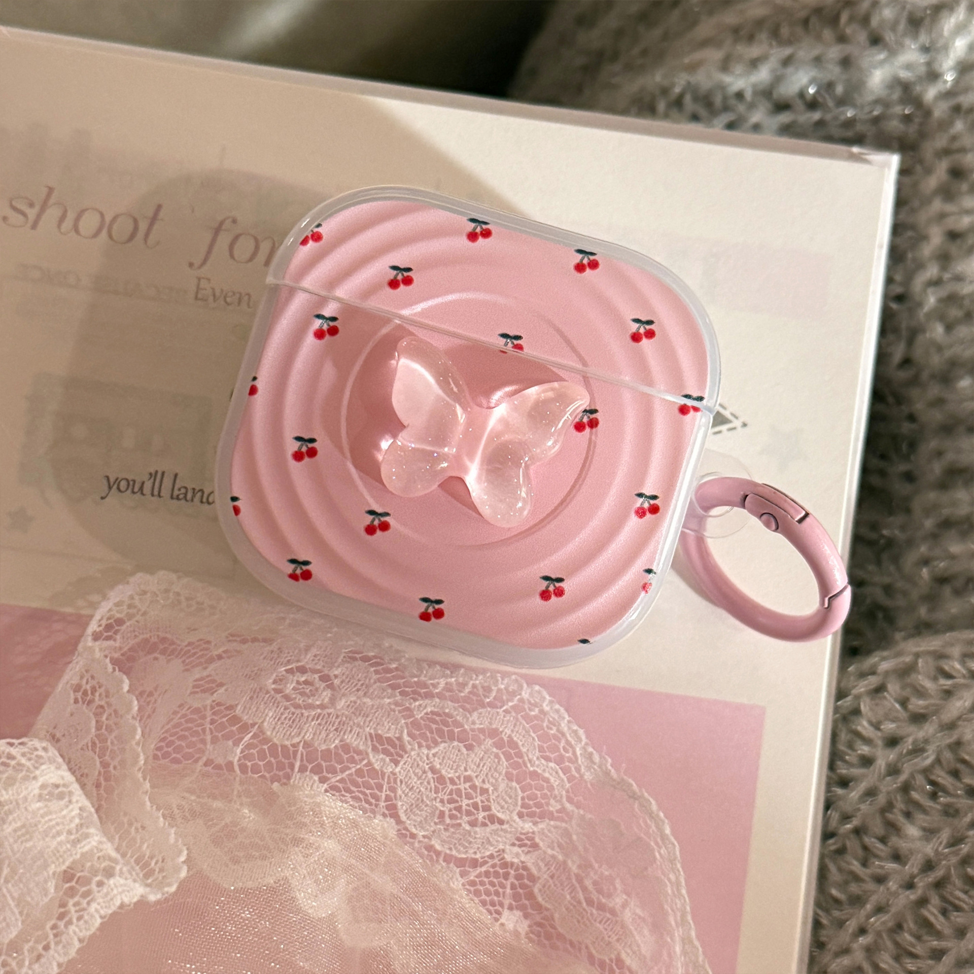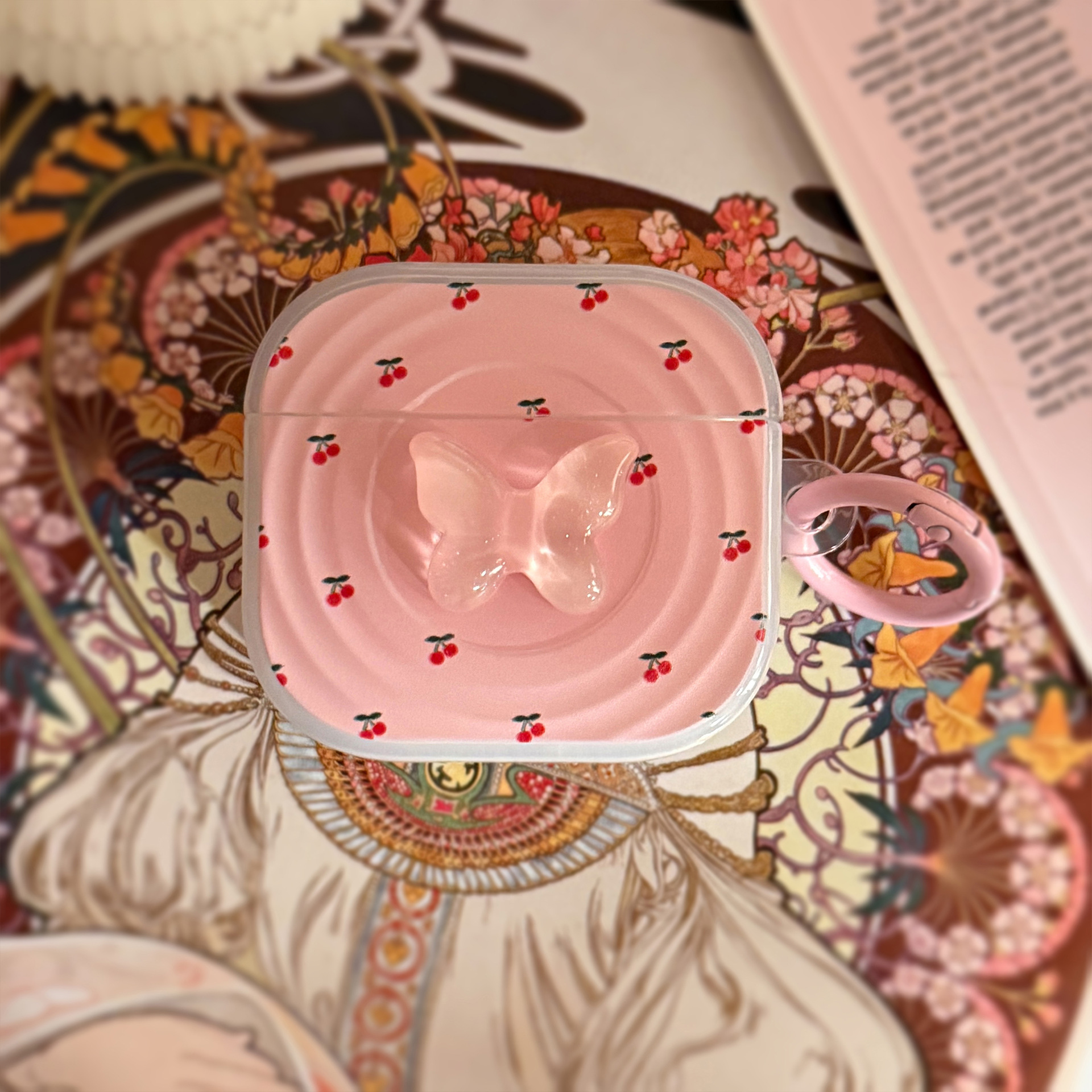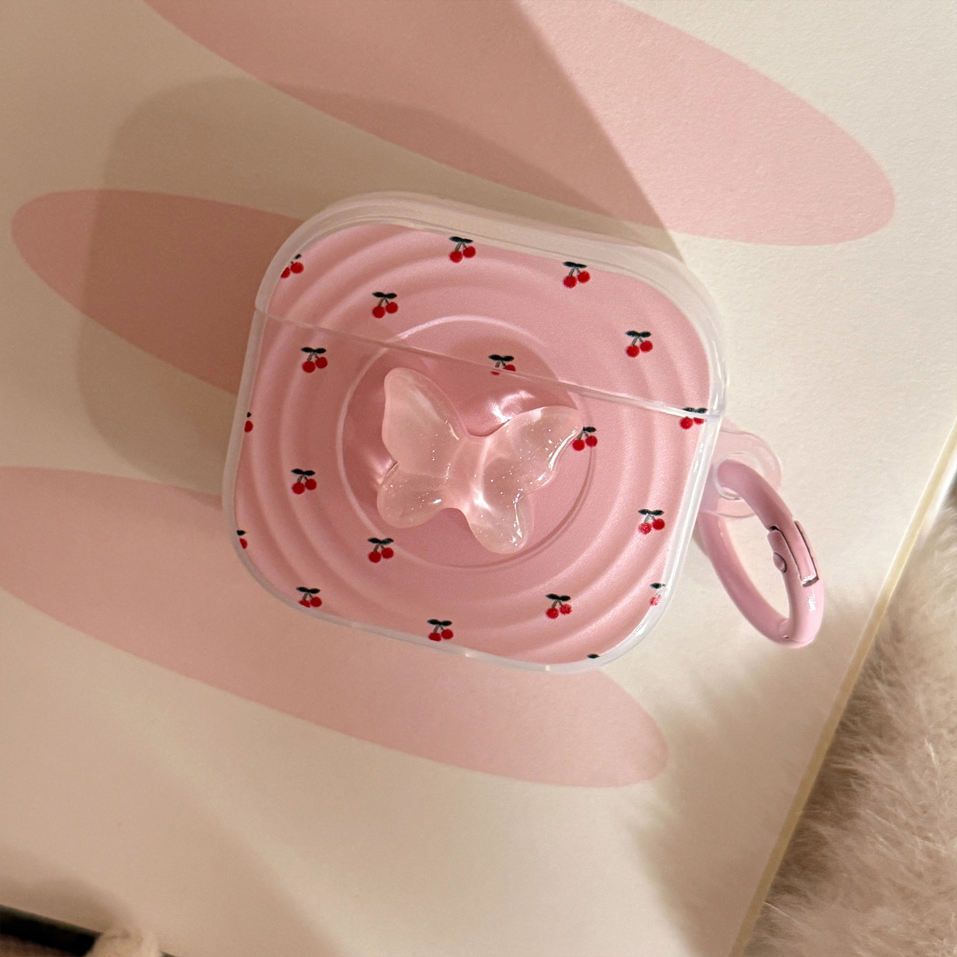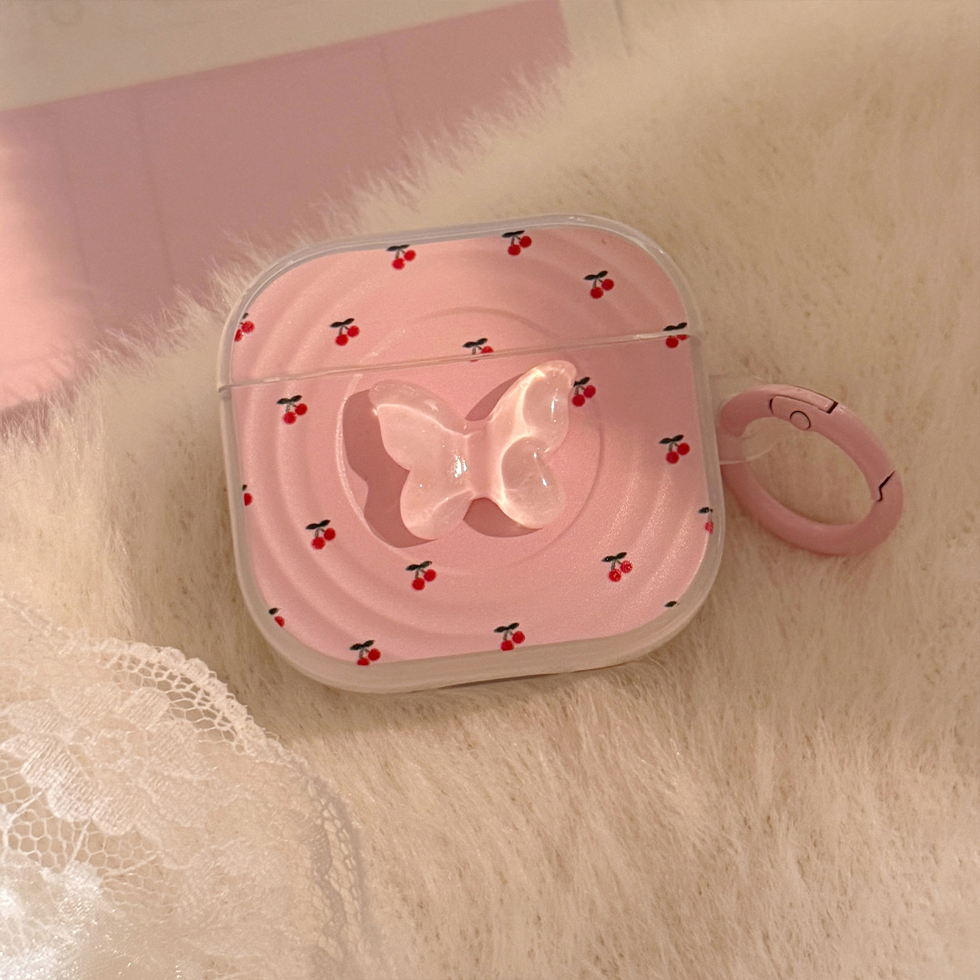 Anillo de cereza rosa para auriculares Airpods Pro 2 cubierta Bluetooth inalámbrico 4 generación 3 mariposas estéreo