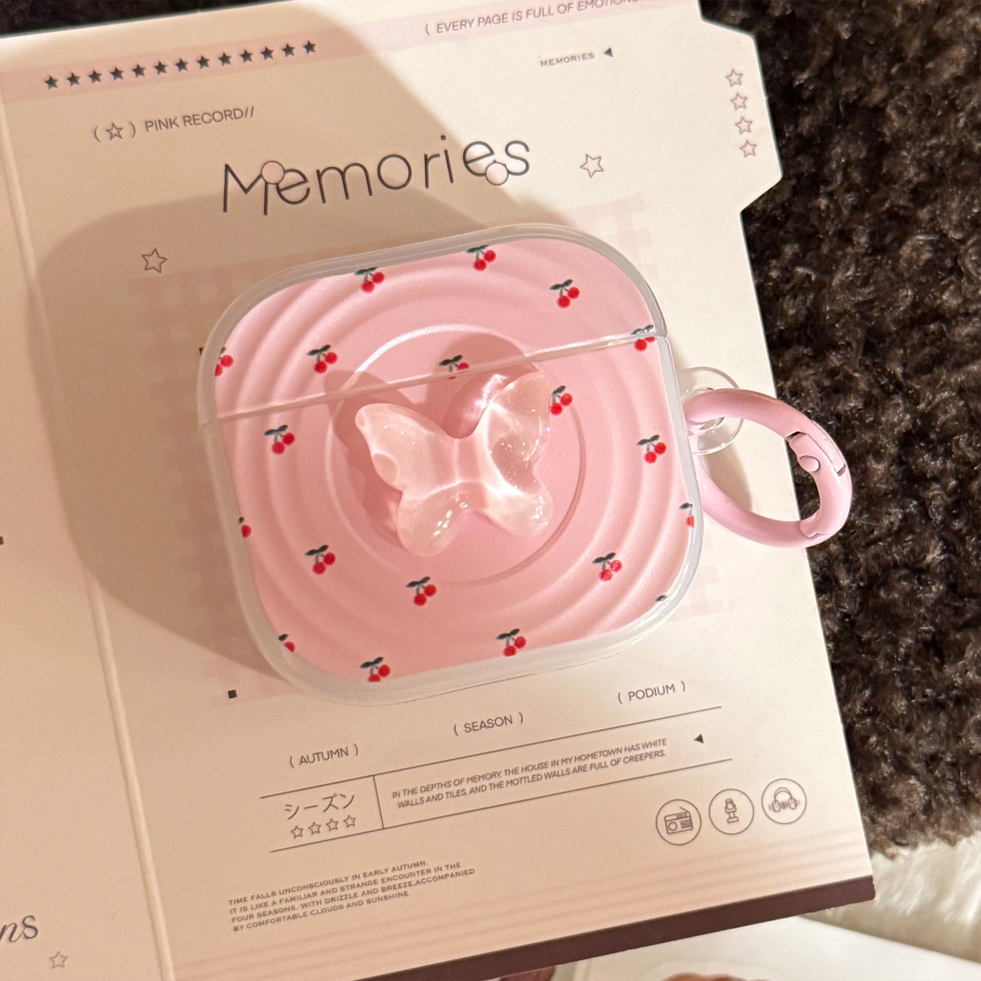 | Color | Mariposa rosa tridimensional de cereza blanca transparente + anillo colgante de polvo ligero, cereza blanca transparente + anillo colgante de polvo ligero |