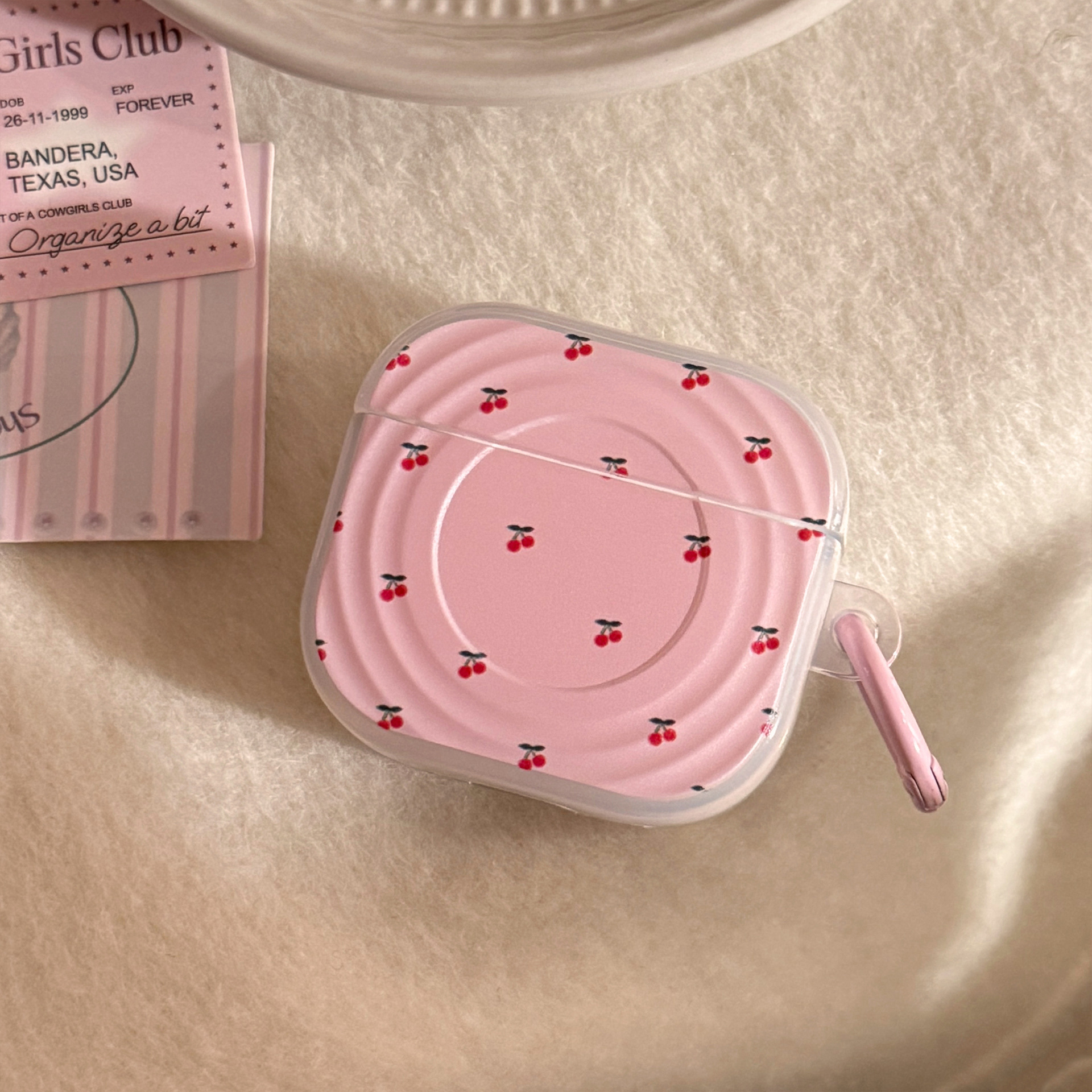 Cereza pequeña en polvo blanco + anillo colgante en polvo ligero