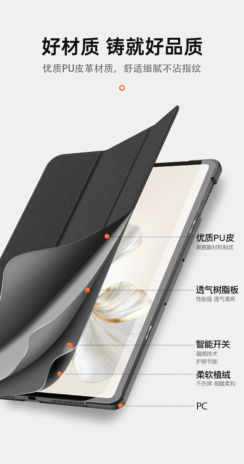 Aplicable para Honor Pad10 cubierta plana de tres plegadas contra caídas, cubierta resistente a los arañazos, fábrica de cubierta al por mayor HonorPadX9a