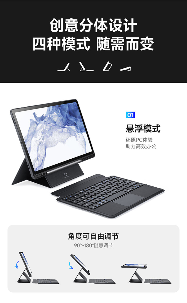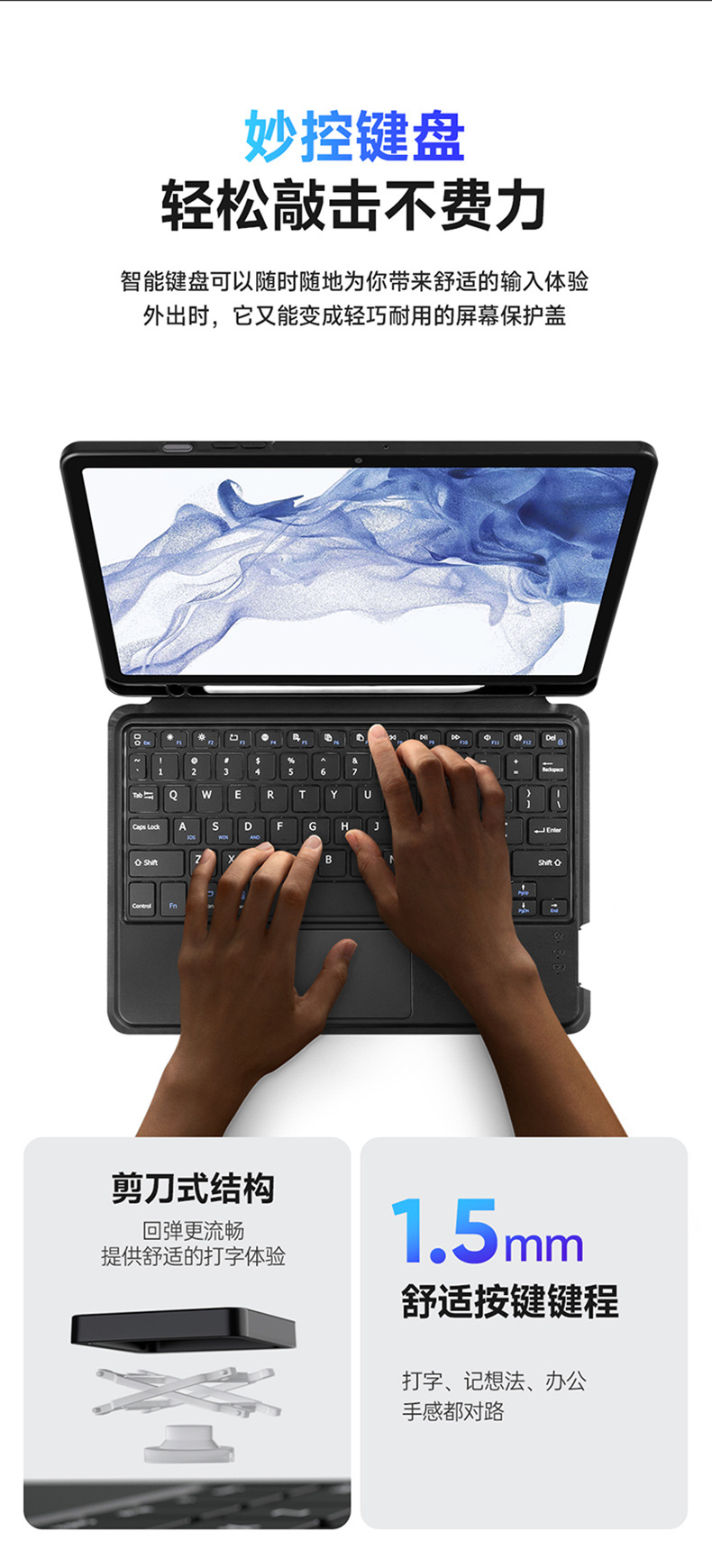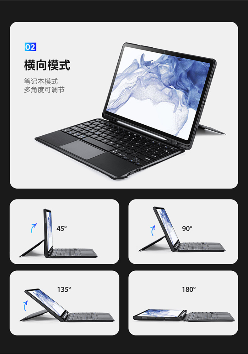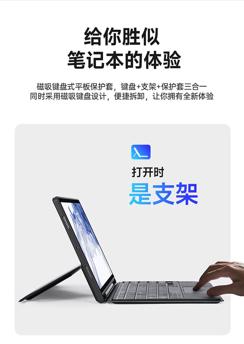 Aplicable a Samsung TabS8Plus tres en un teclado táctil cubierta protectora S7FE separación magnética teclado externo