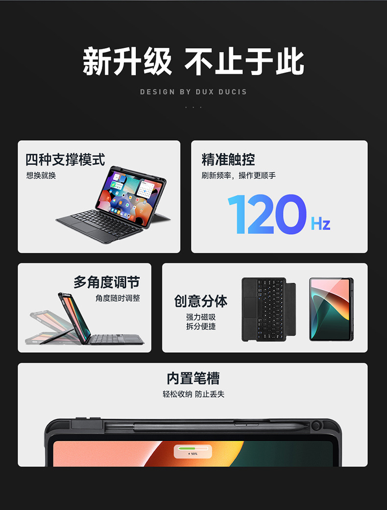 DUXDUCIS es una funda protectora con teclado inalámbrico para la tableta Xiaomi Pad8Pro, con separación magnética y funda tipo Magic Keyboard.
