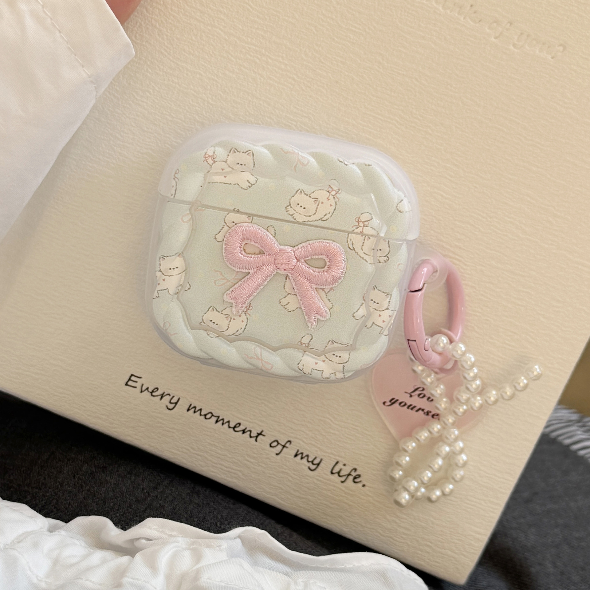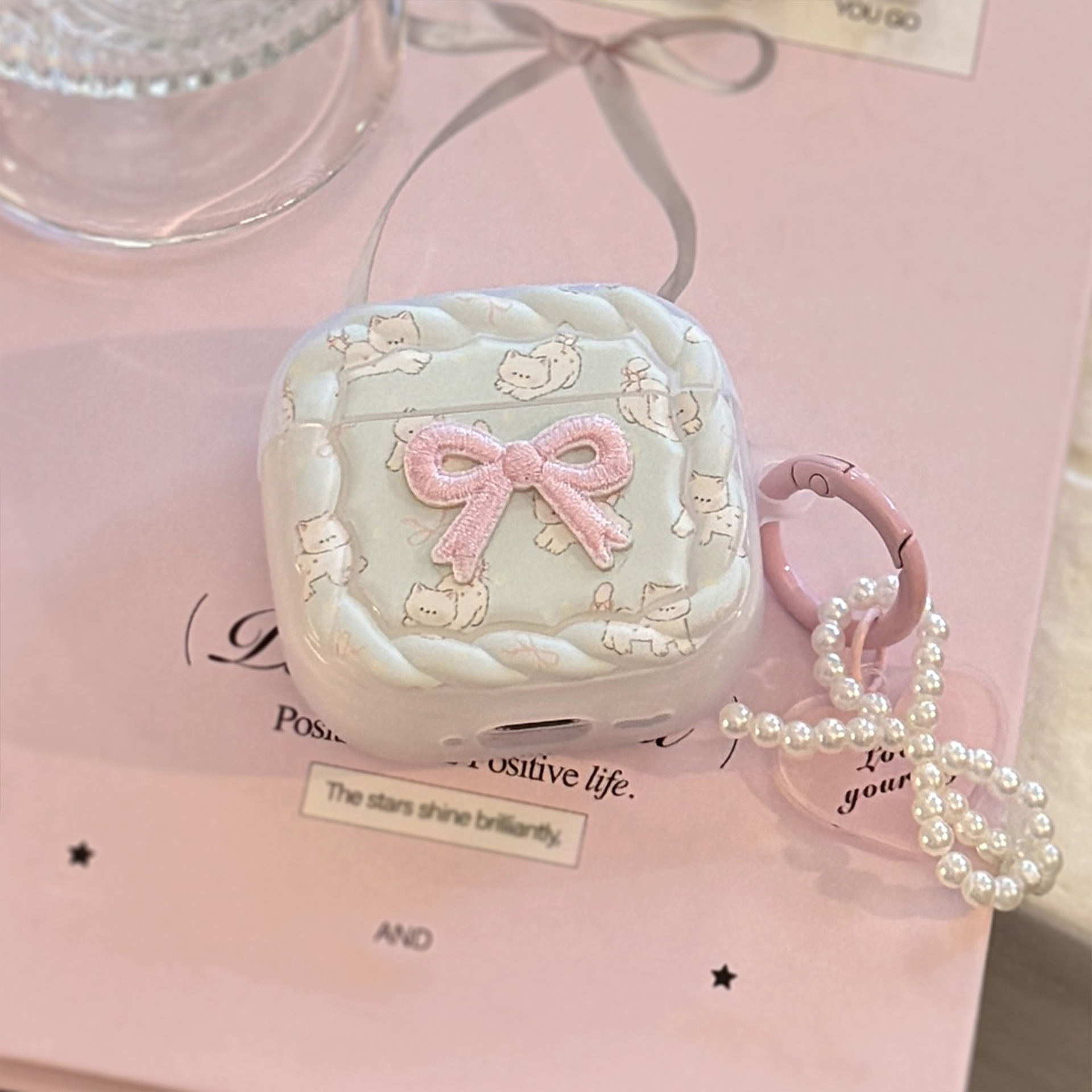 Gato dulce para Apple Airpods4 Pro2 auriculares bluetooth 3 generación colgante de polvo de perla 1 / 2