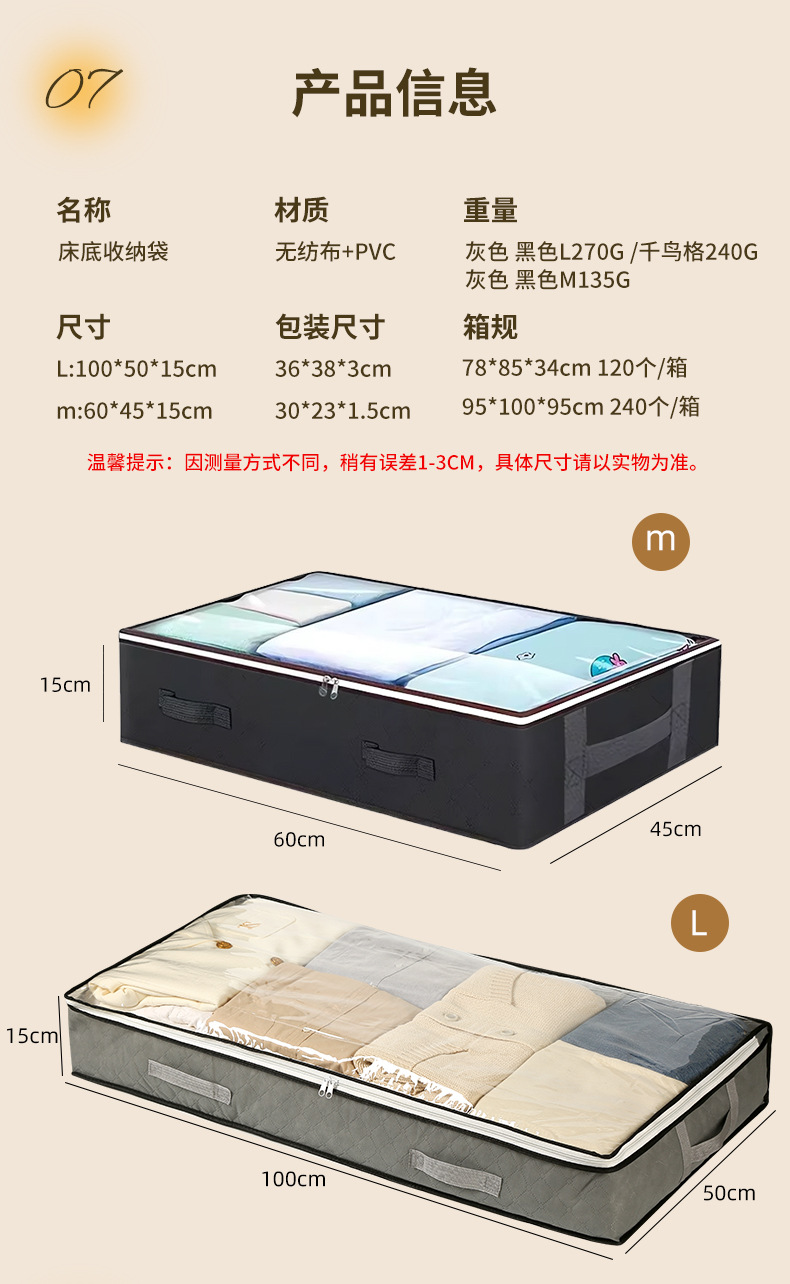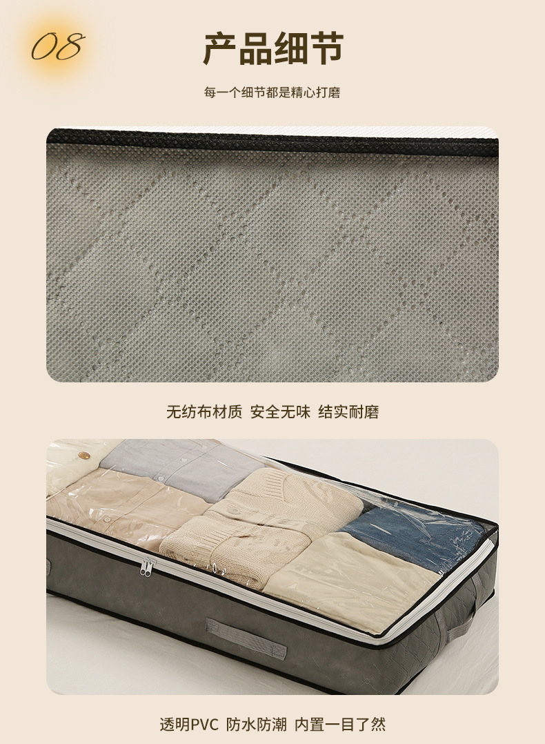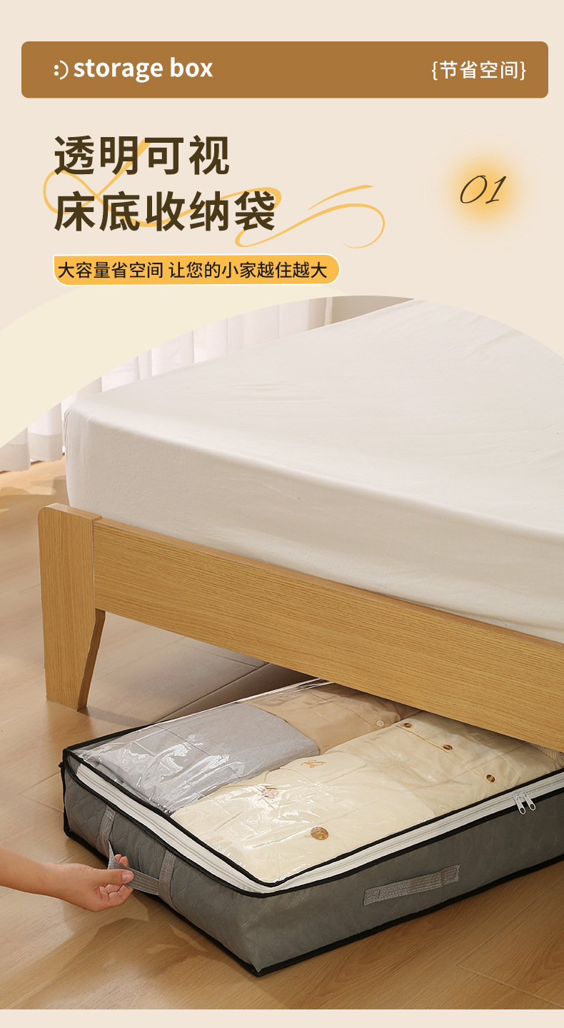 Bolsa de almacenamiento debajo de la cama de gran capacidad de tela no tejida, colcha de algodón para ropa a prueba de polvo a prueba de humedad, bolsa de acabado visual plegable