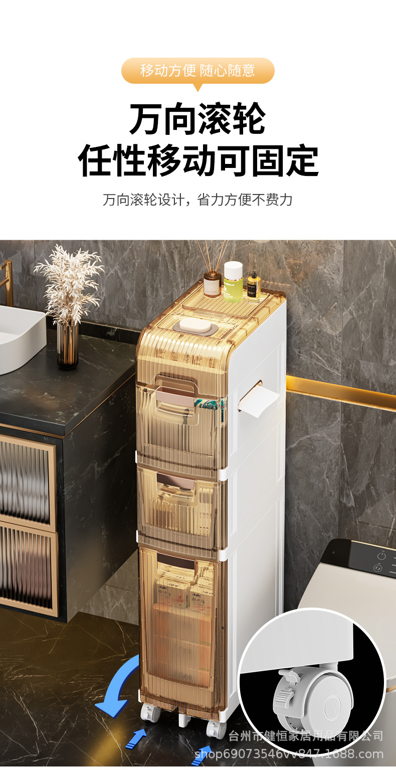 Baño de hendidura cocina almacenamiento estante de almacenamiento multicapa piso armario de almacenamiento doméstico ultra estrecho armario de acabado de inodoro