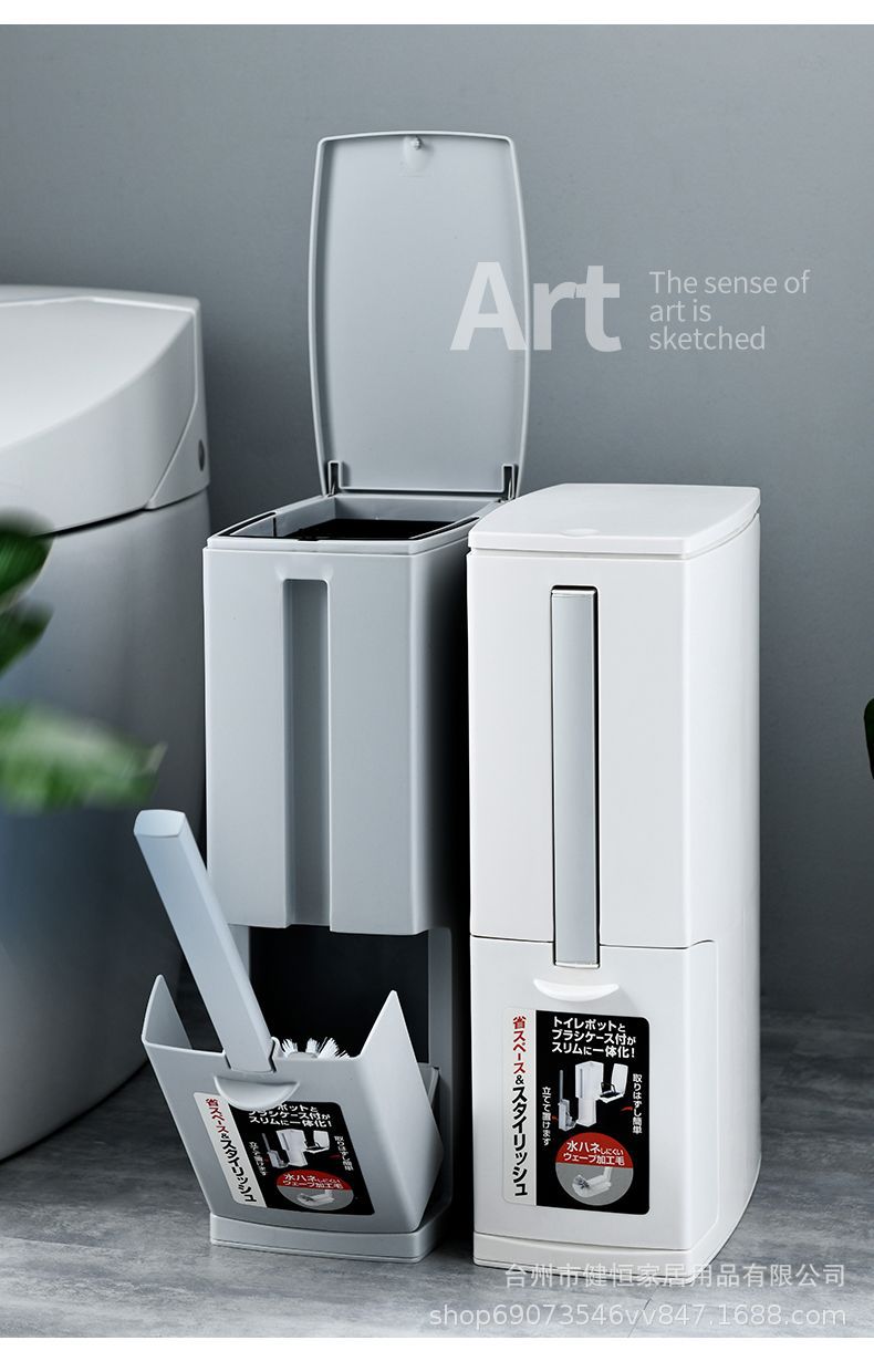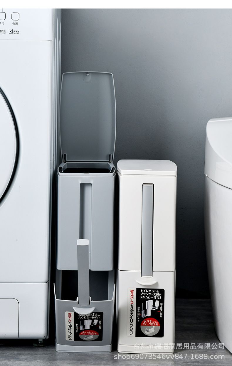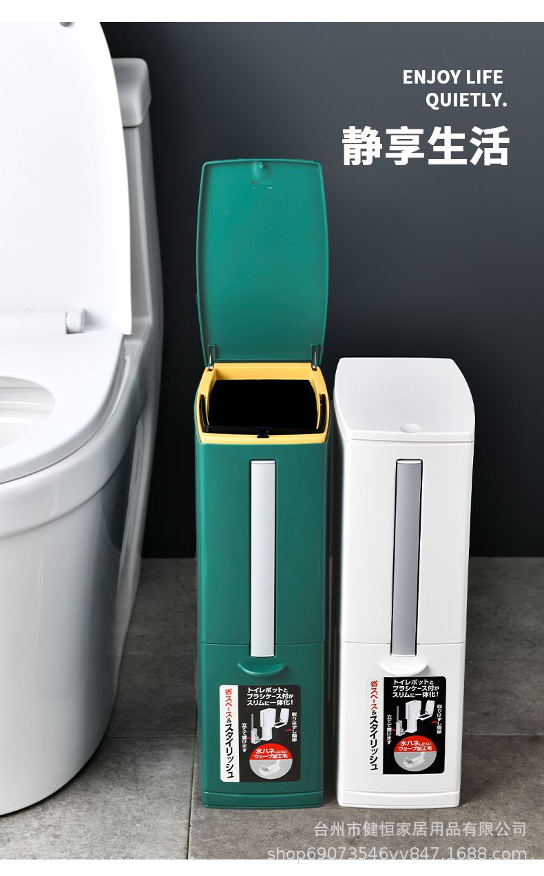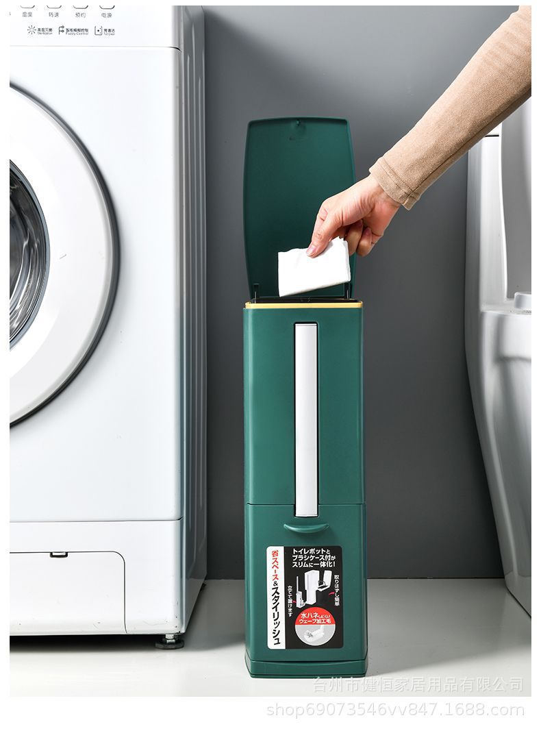 Cubo de basura para baño con tapa, uso doméstico, tamaños grande y pequeño, para inodoros de espacios reducidos, cubo de basura para baño con escobilla de inodoro integrada.