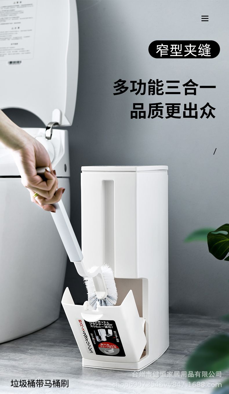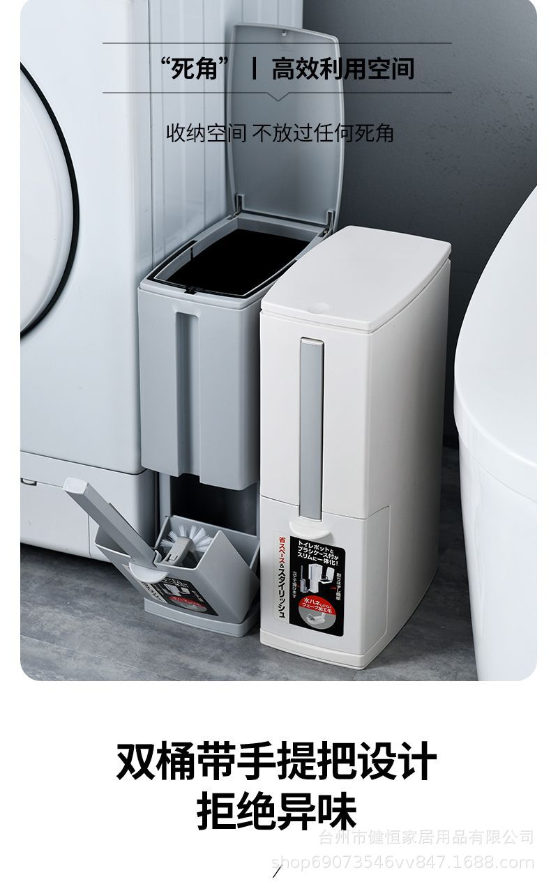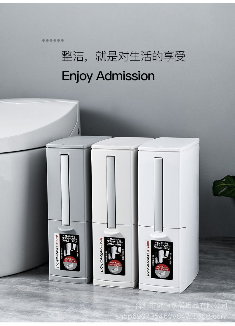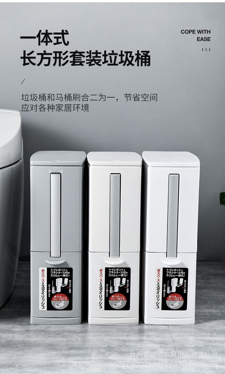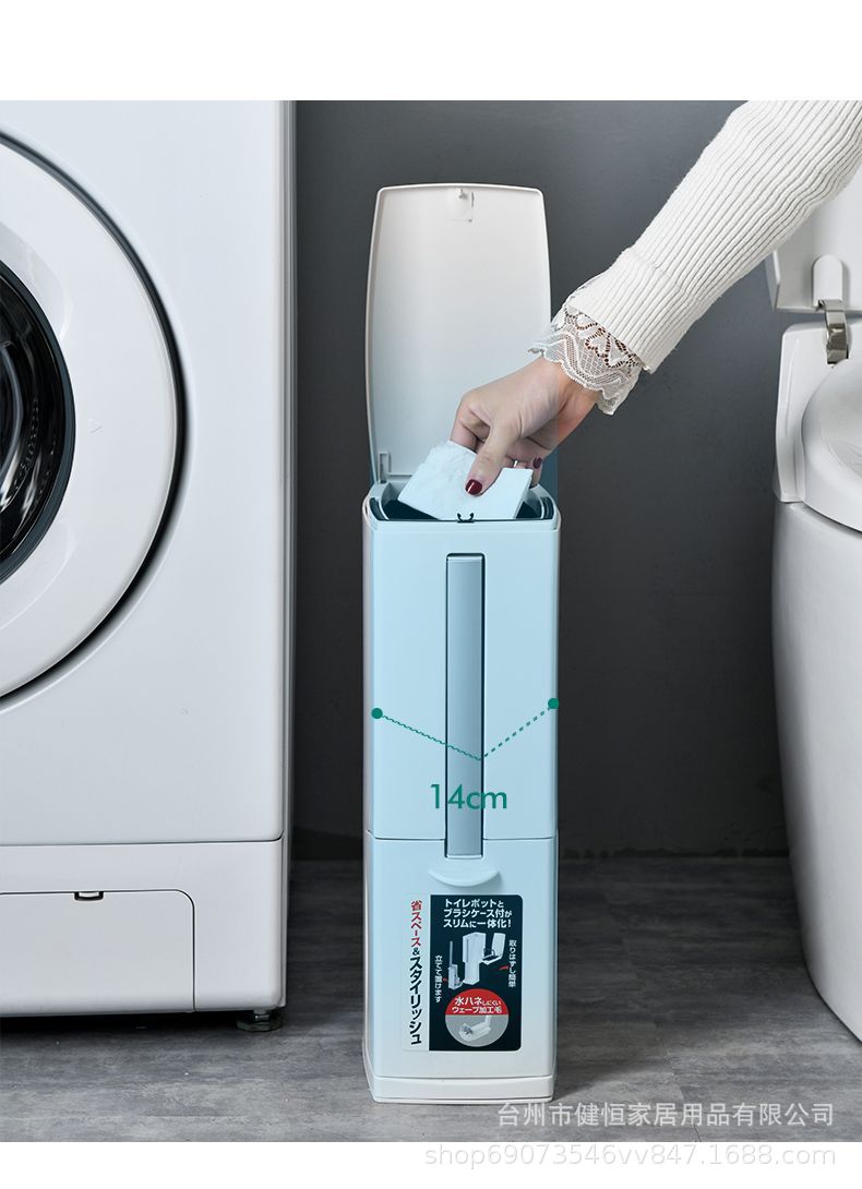 Cubo de basura para baño con tapa, uso doméstico, tamaños grande y pequeño, para inodoros de espacios reducidos, cubo de basura para baño con escobilla de inodoro integrada.
