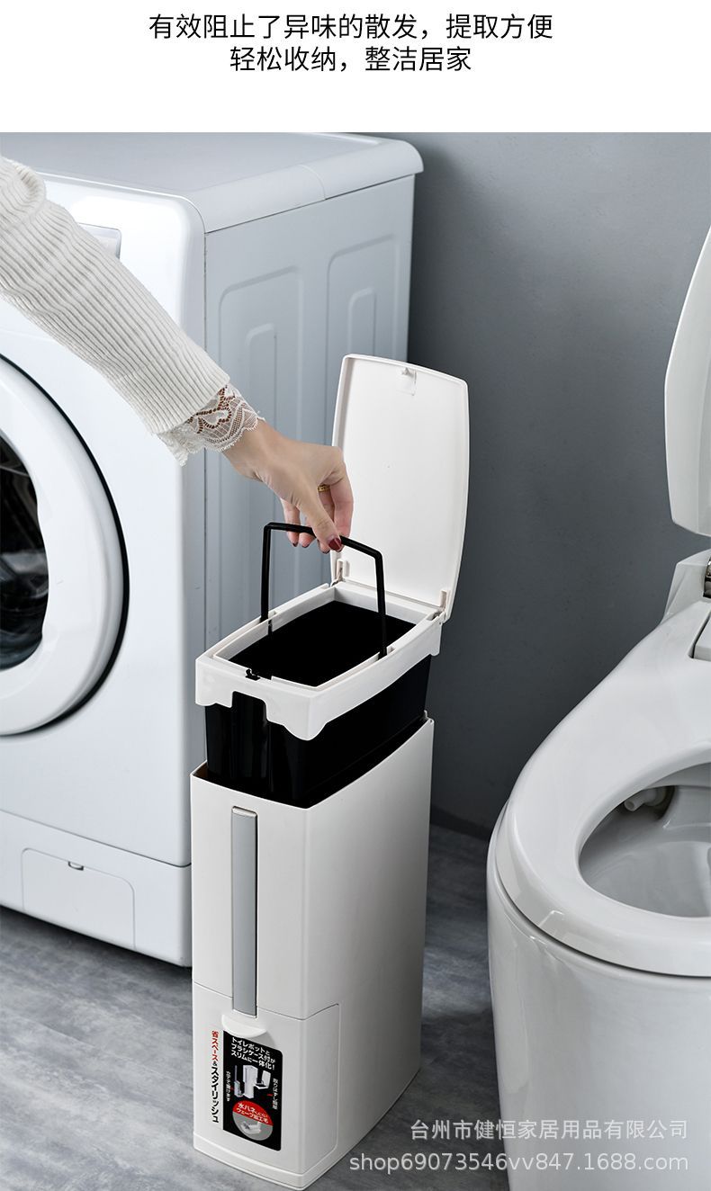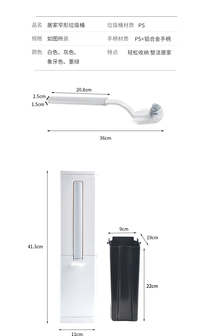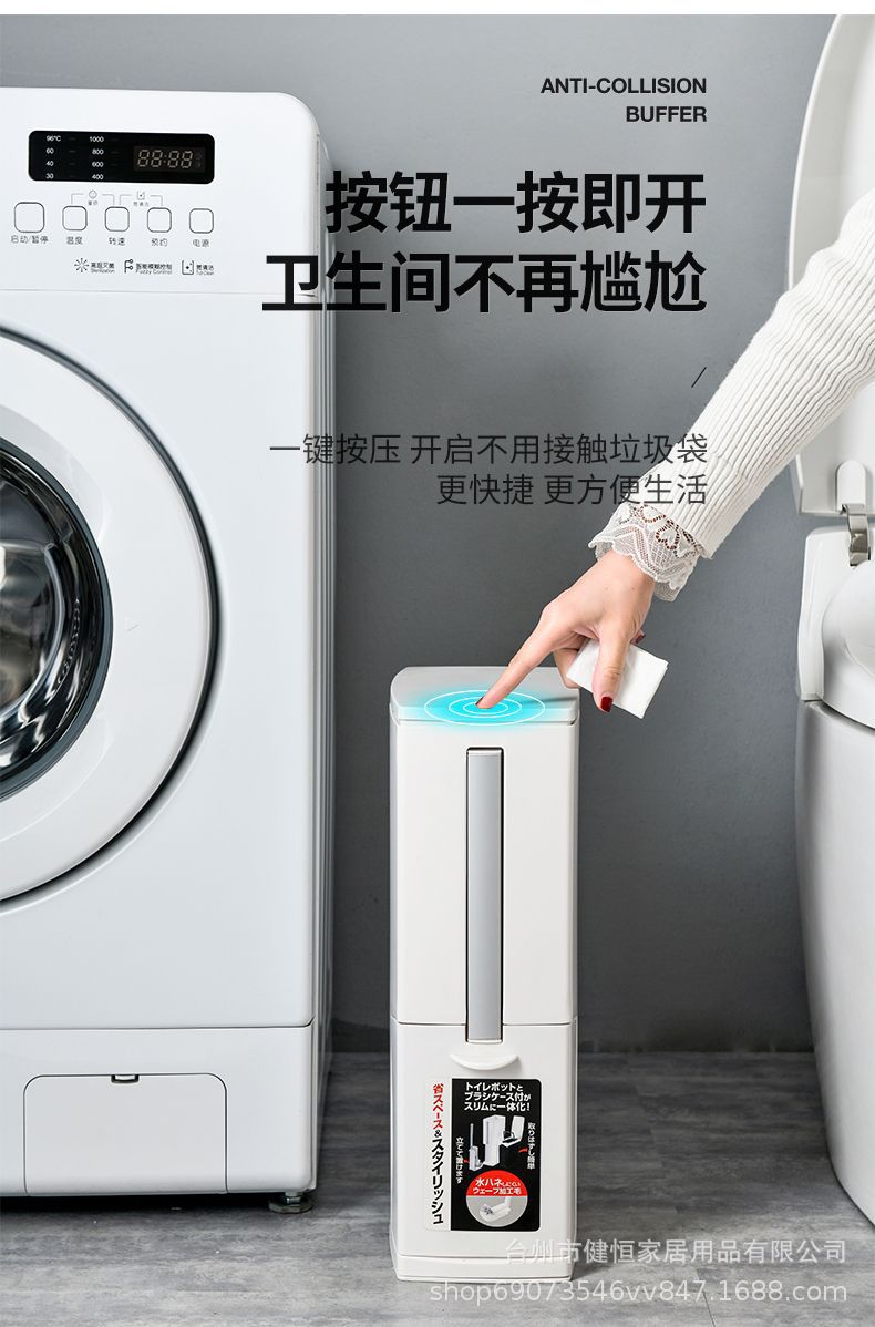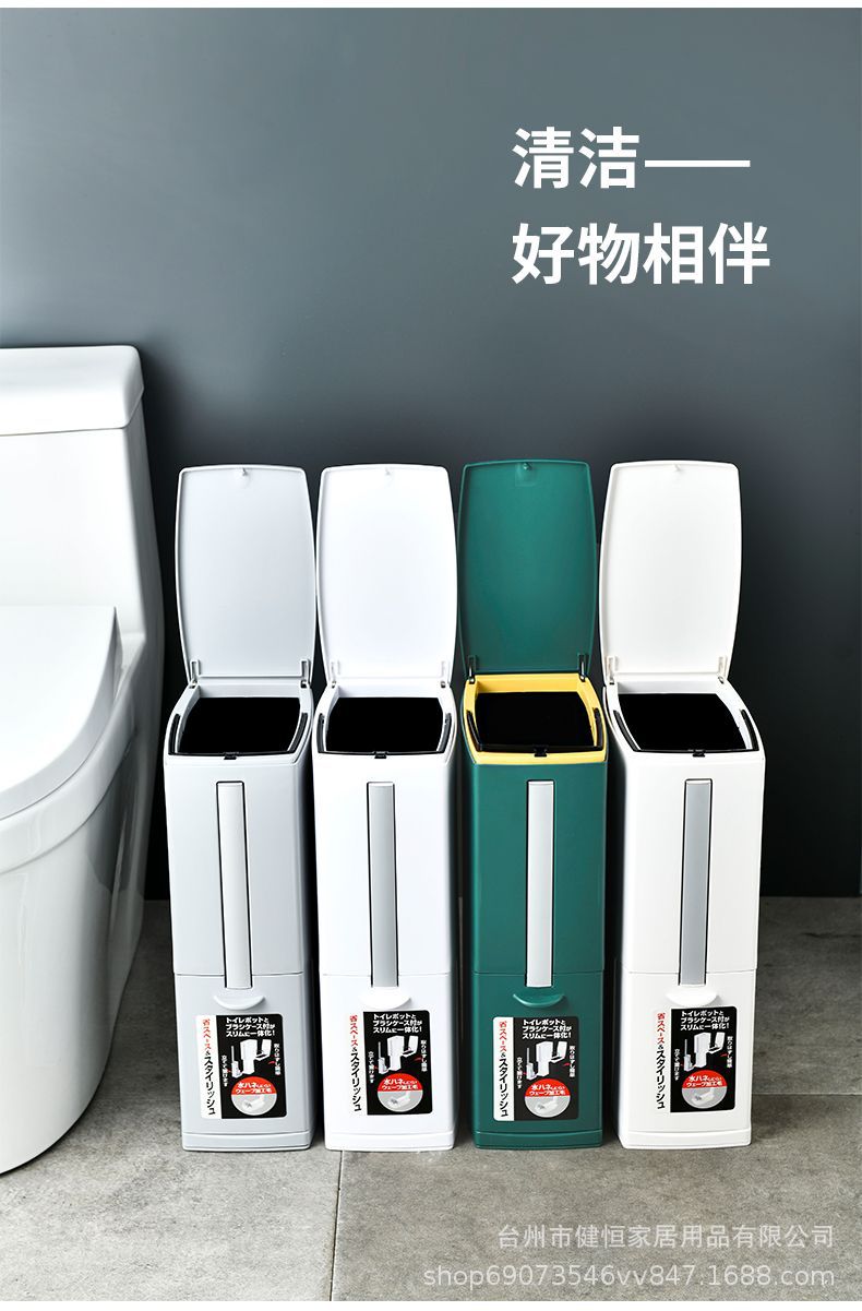 Cubo de basura para baño con tapa, uso doméstico, tamaños grande y pequeño, para inodoros de espacios reducidos, cubo de basura para baño con escobilla de inodoro integrada.