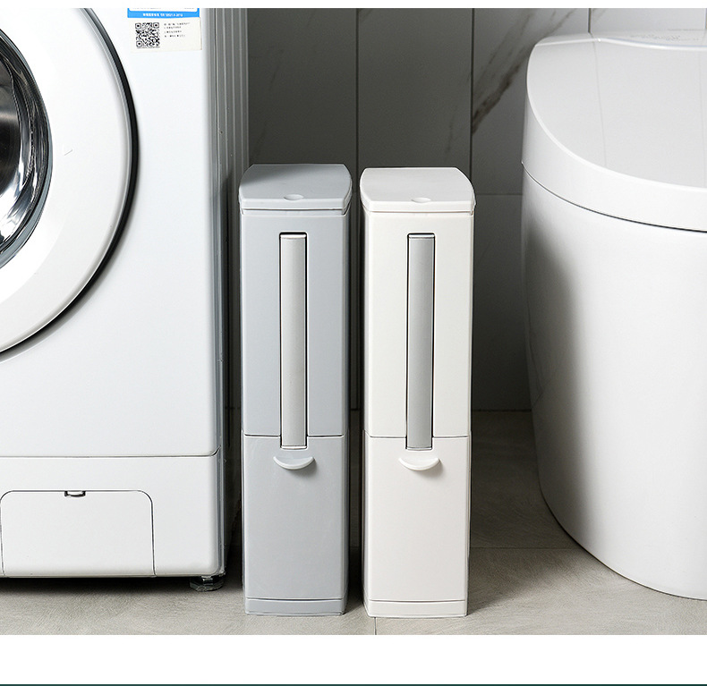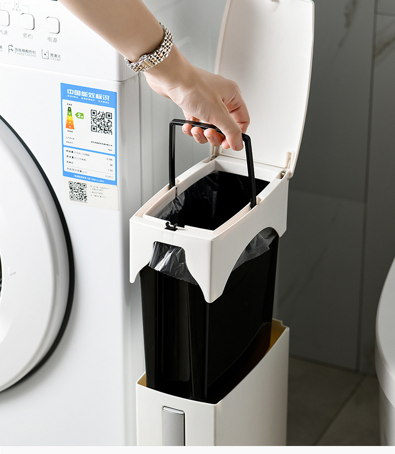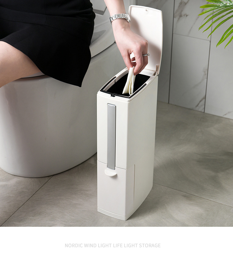 Baño japonés cepillo de inodoro de costura estrecha cesta de papel higiénico doméstico con una tapa integrada baño creativo con tapa basura