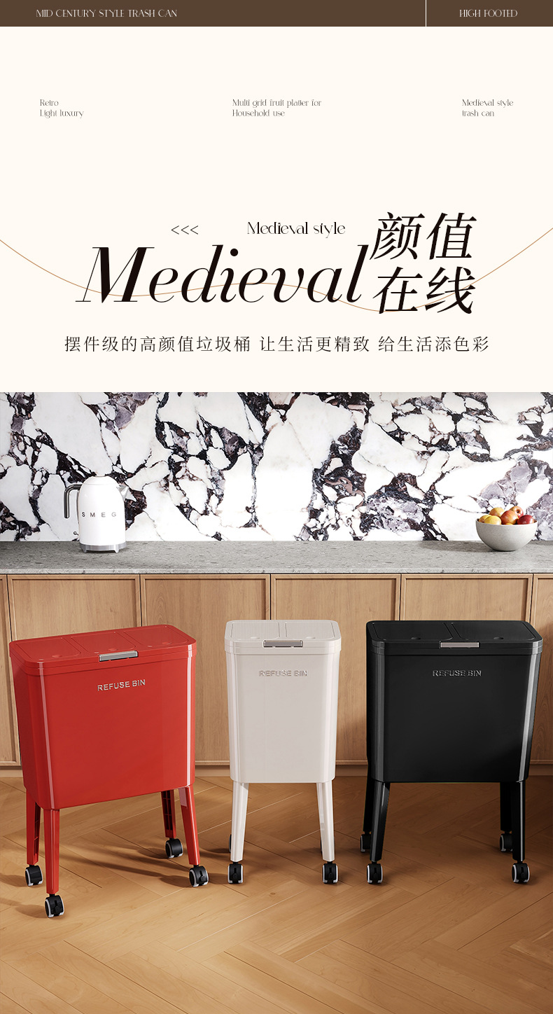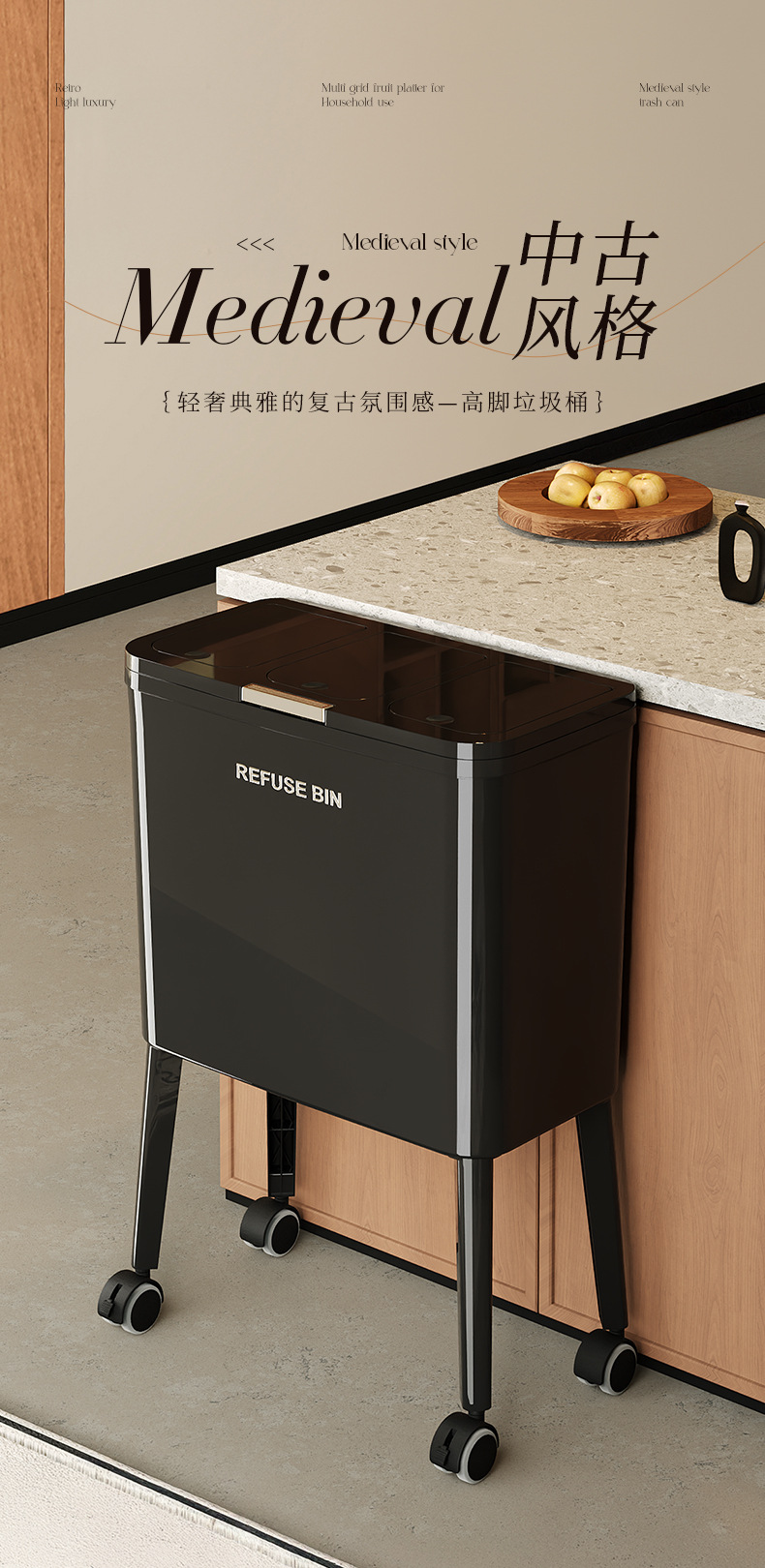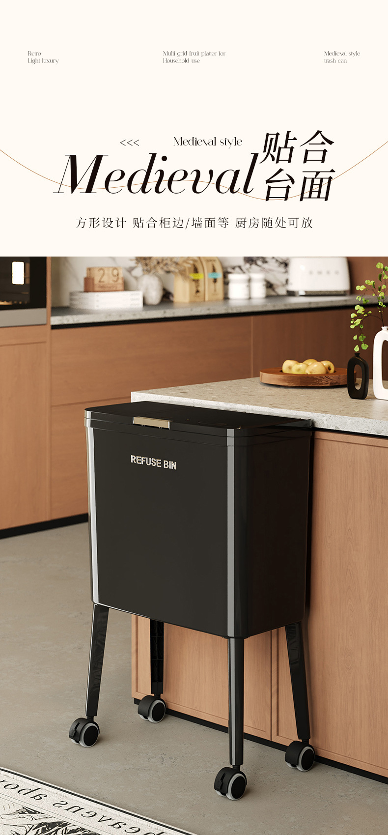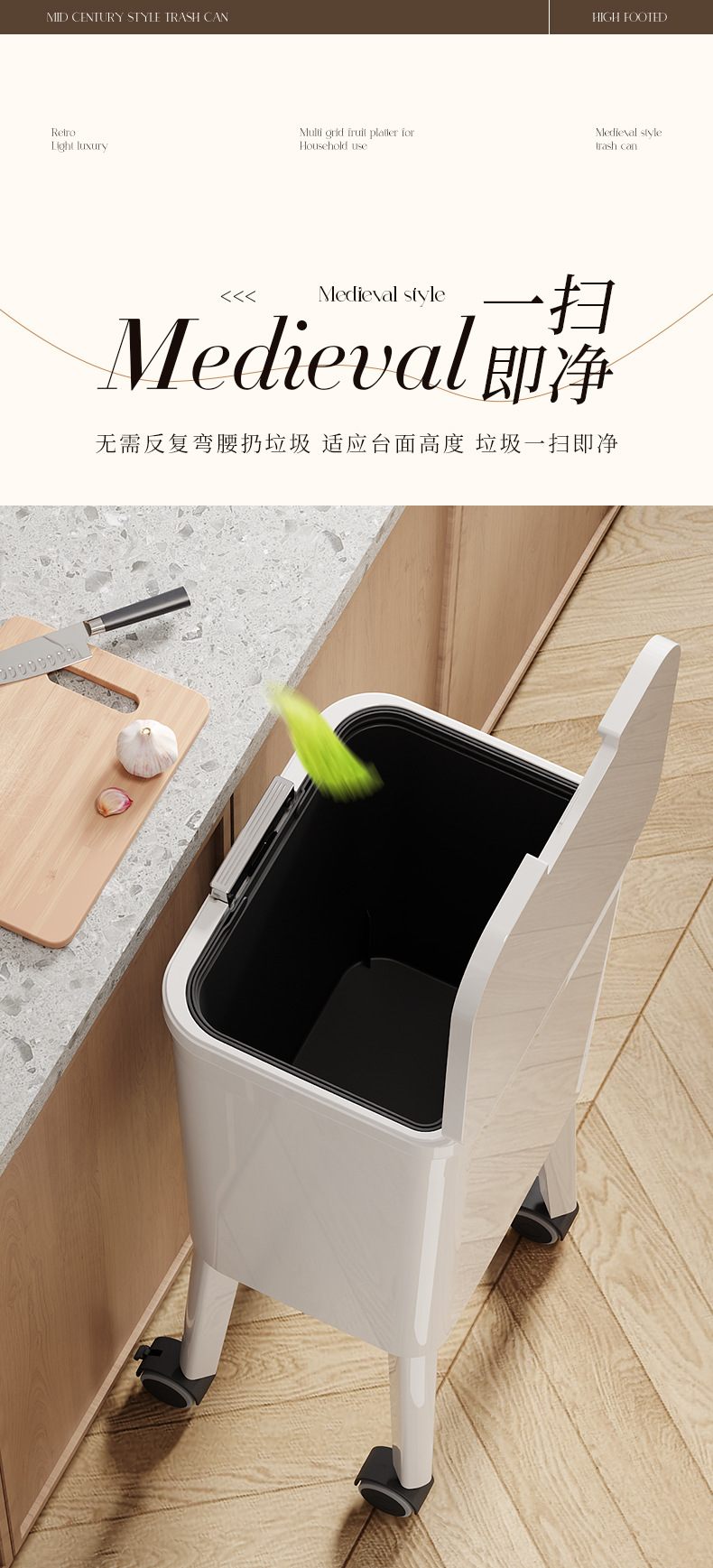 2025 nuevo contenedor de basura de cocina creativo sin doblarse y presionar la tapa abierta se puede quitar el resto de la cocina contenedor de basura de pies altos estrechos