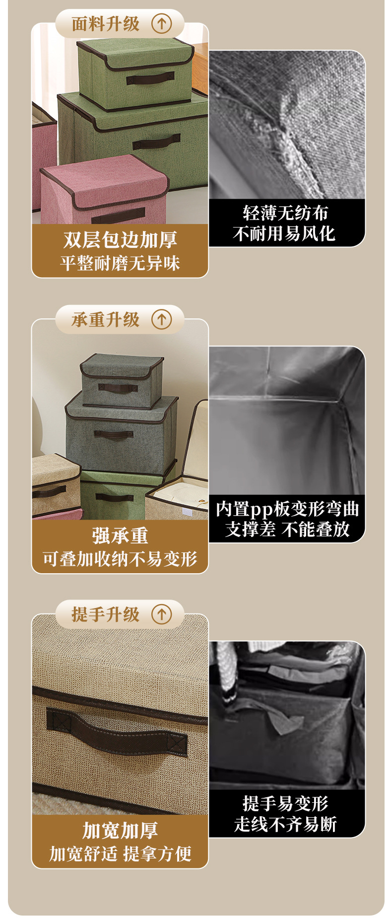Caja de almacenamiento plegable de tela casera con cubierta a prueba de polvo placa dura portátil gruesa caja de almacenamiento de ropa