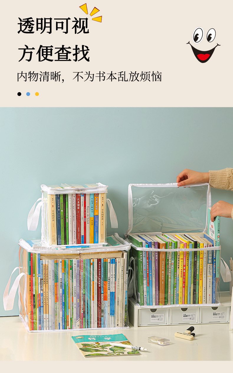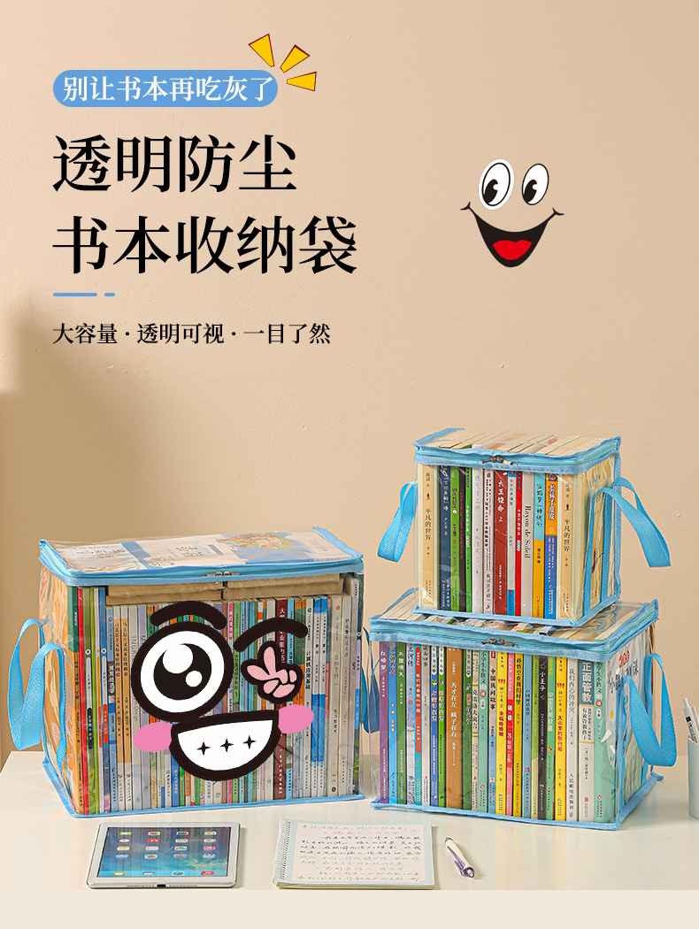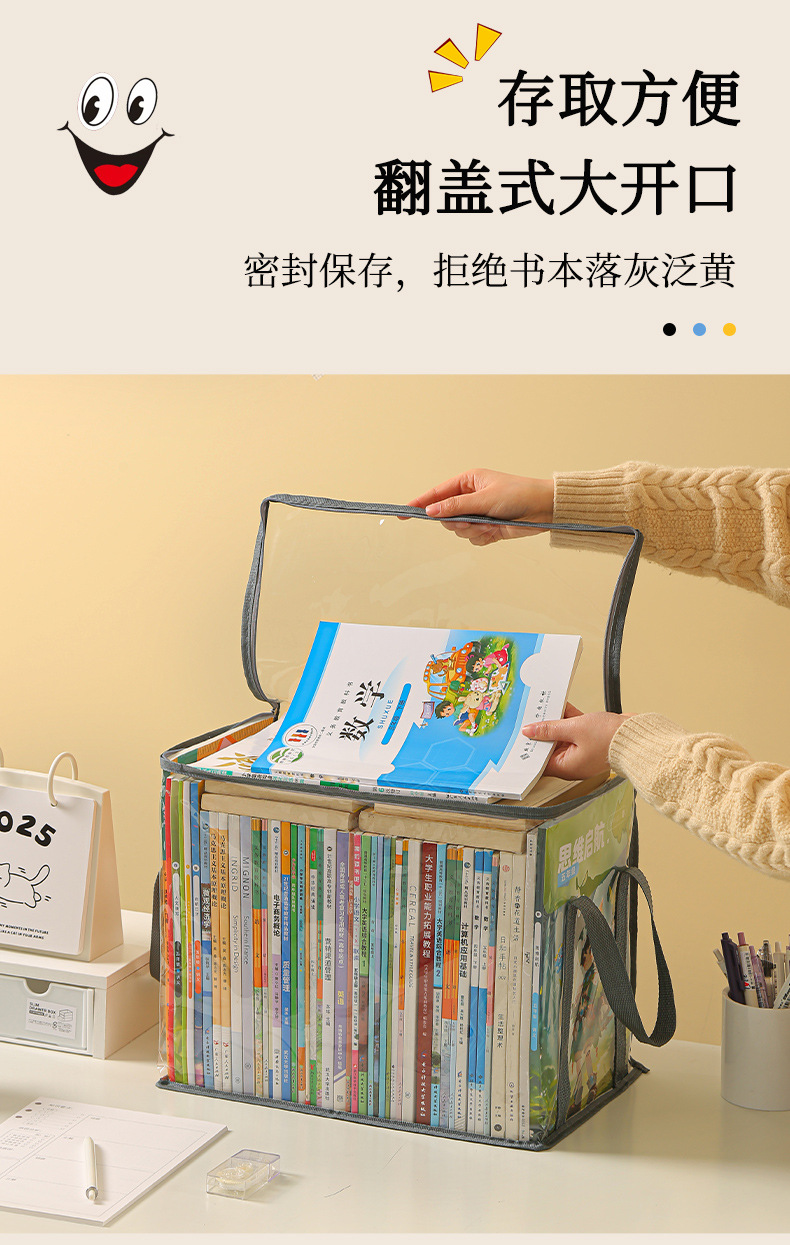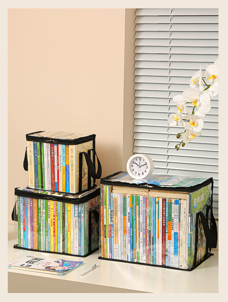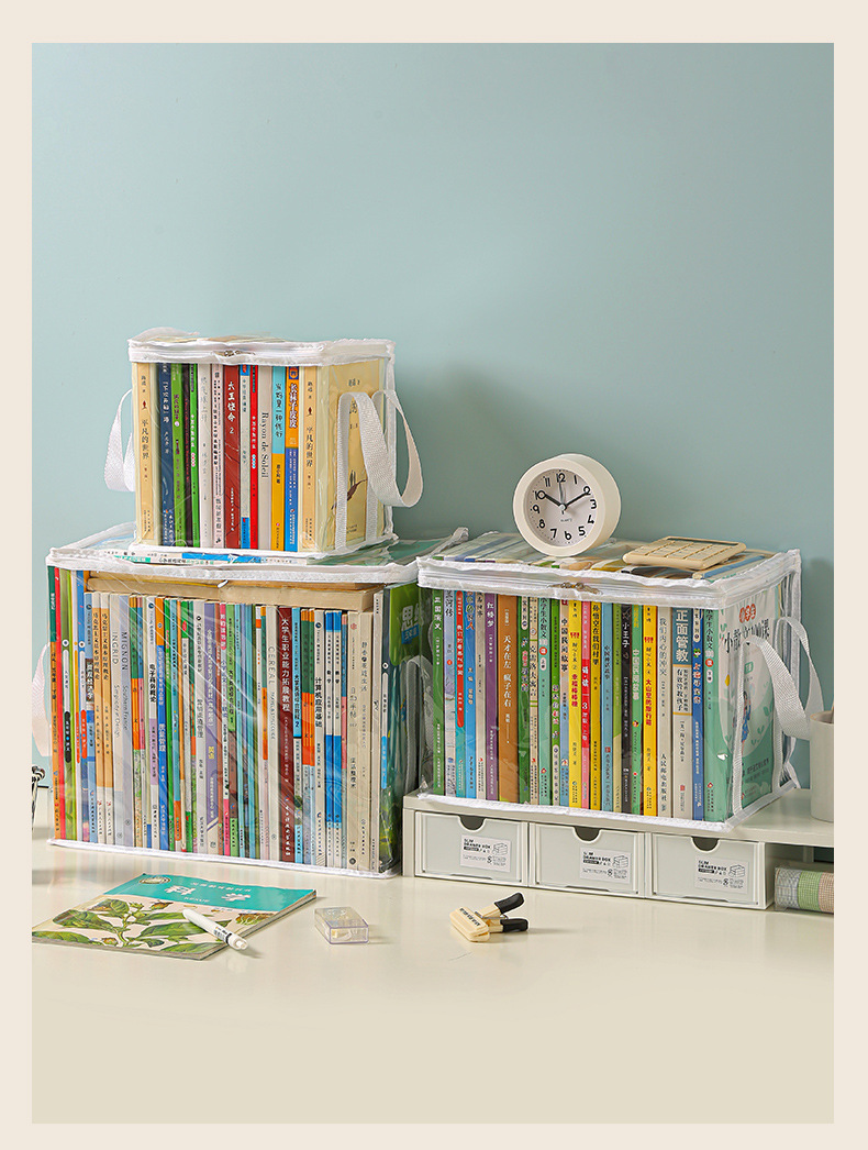 Nueva caja de almacenamiento de libros visual de gran capacidad, caja de almacenamiento de artículos diversos plegable transparente, impermeable y a prueba de polvo, almacenamiento de libros de texto