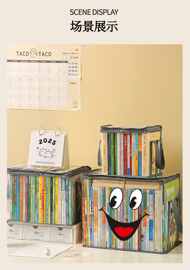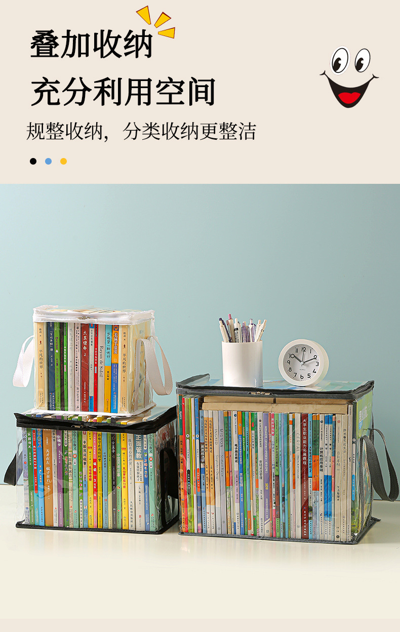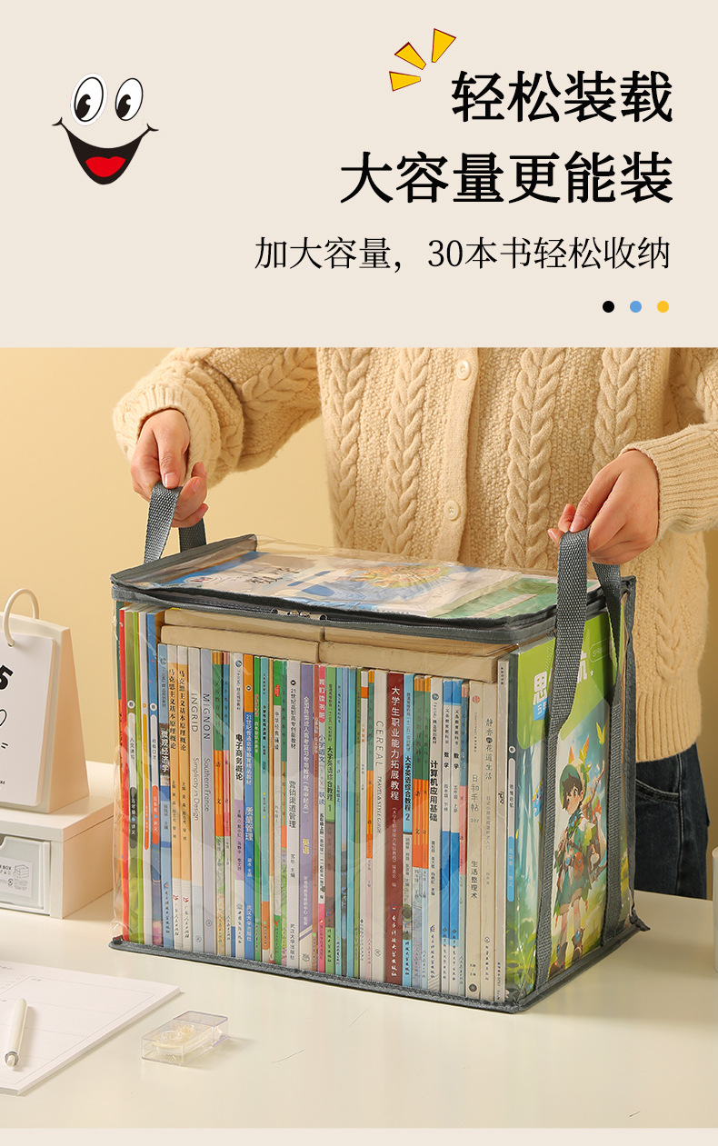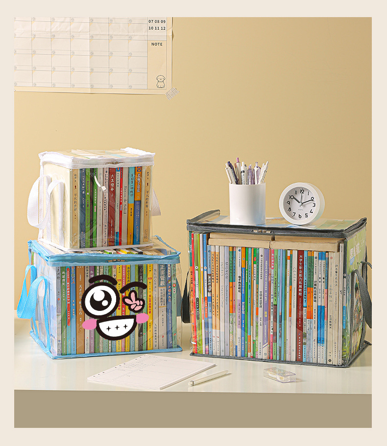 Nueva caja de almacenamiento de libros visual de gran capacidad, caja de almacenamiento de artículos diversos plegable transparente, impermeable y a prueba de polvo, almacenamiento de libros de texto