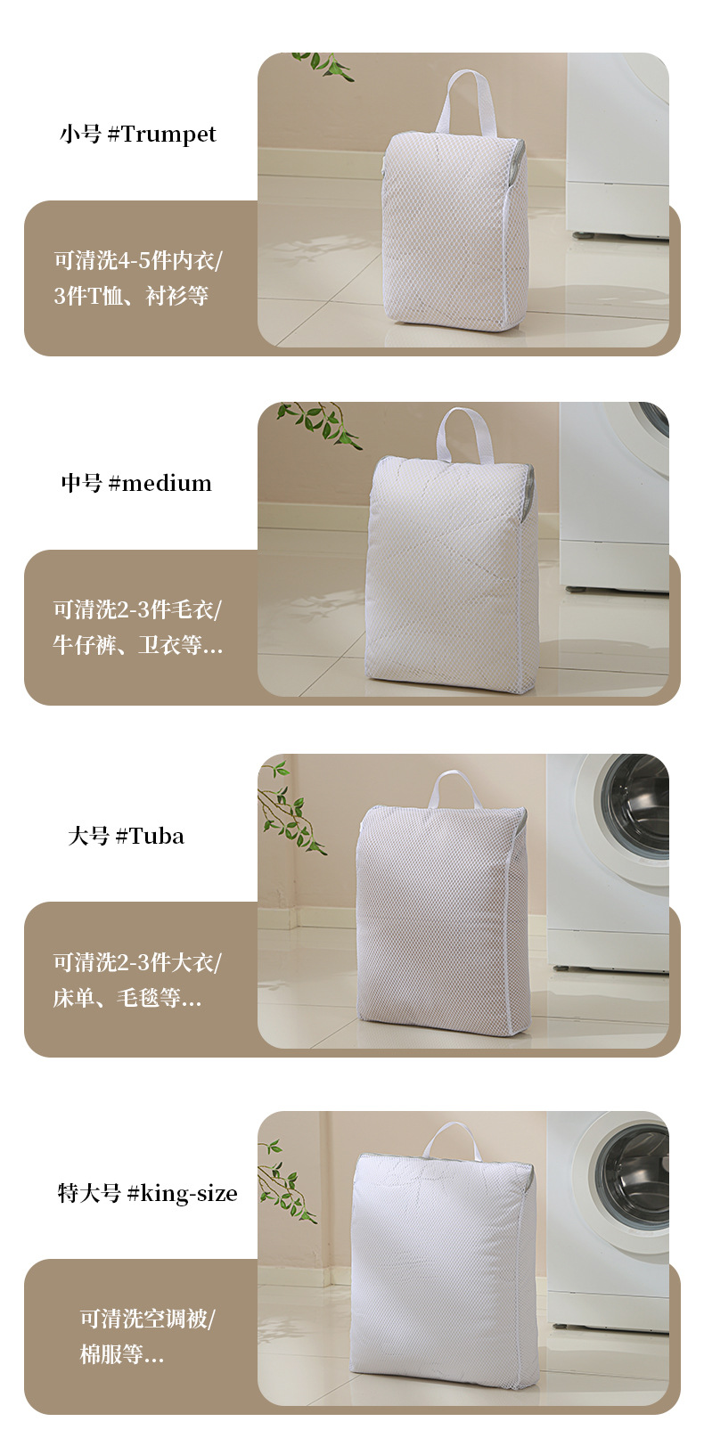 | Color | Tamaño pequeño de la bolsa de lavado, tamaño medio de la bolsa de lavado, tamaño grande de la bolsa de lavado, tamaño grande de la bolsa de lavado |