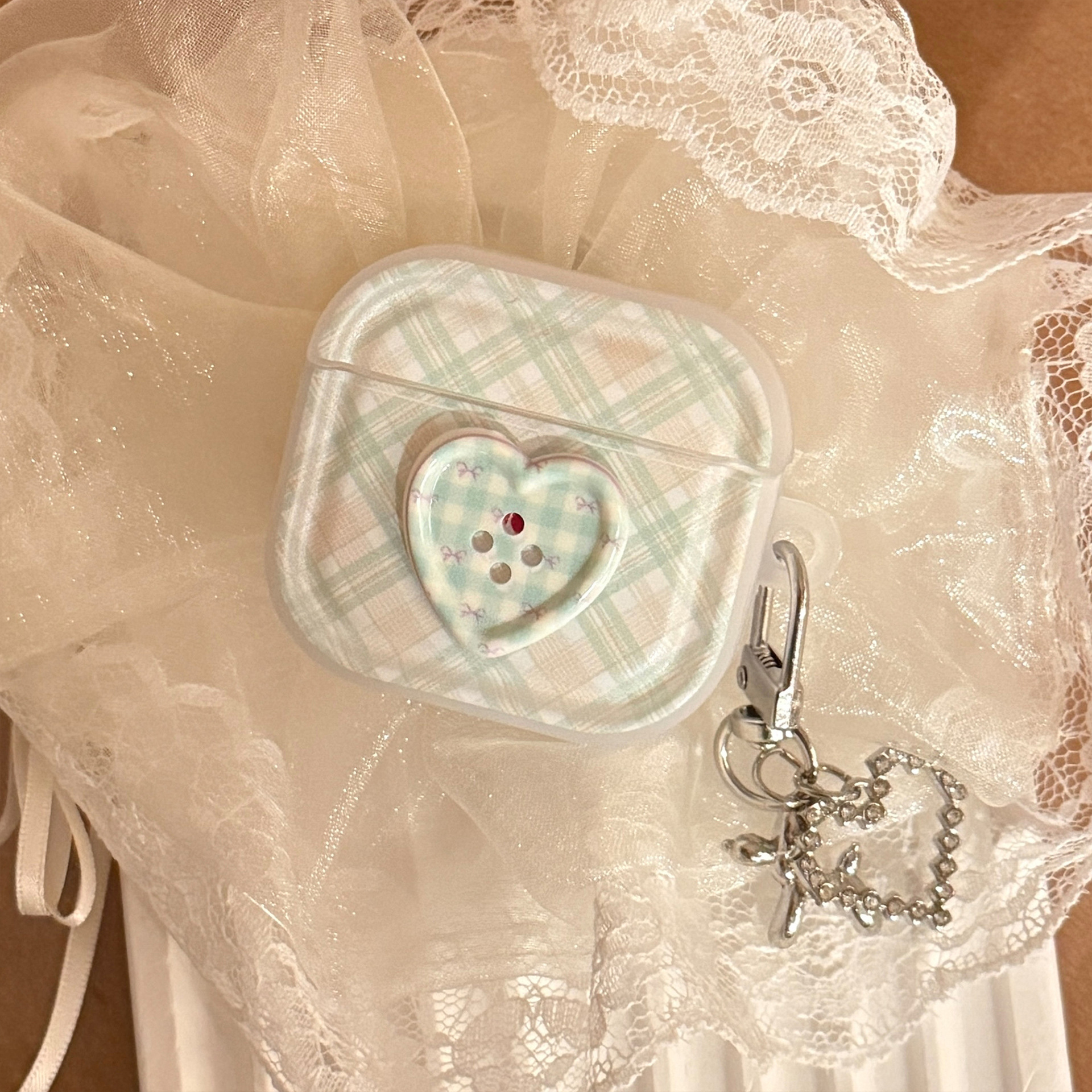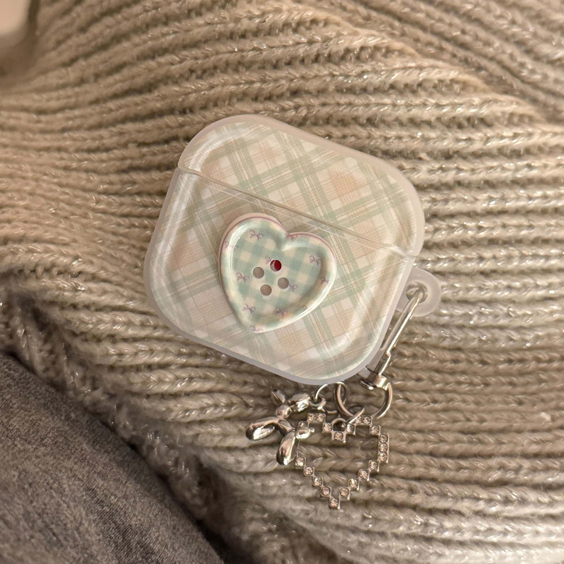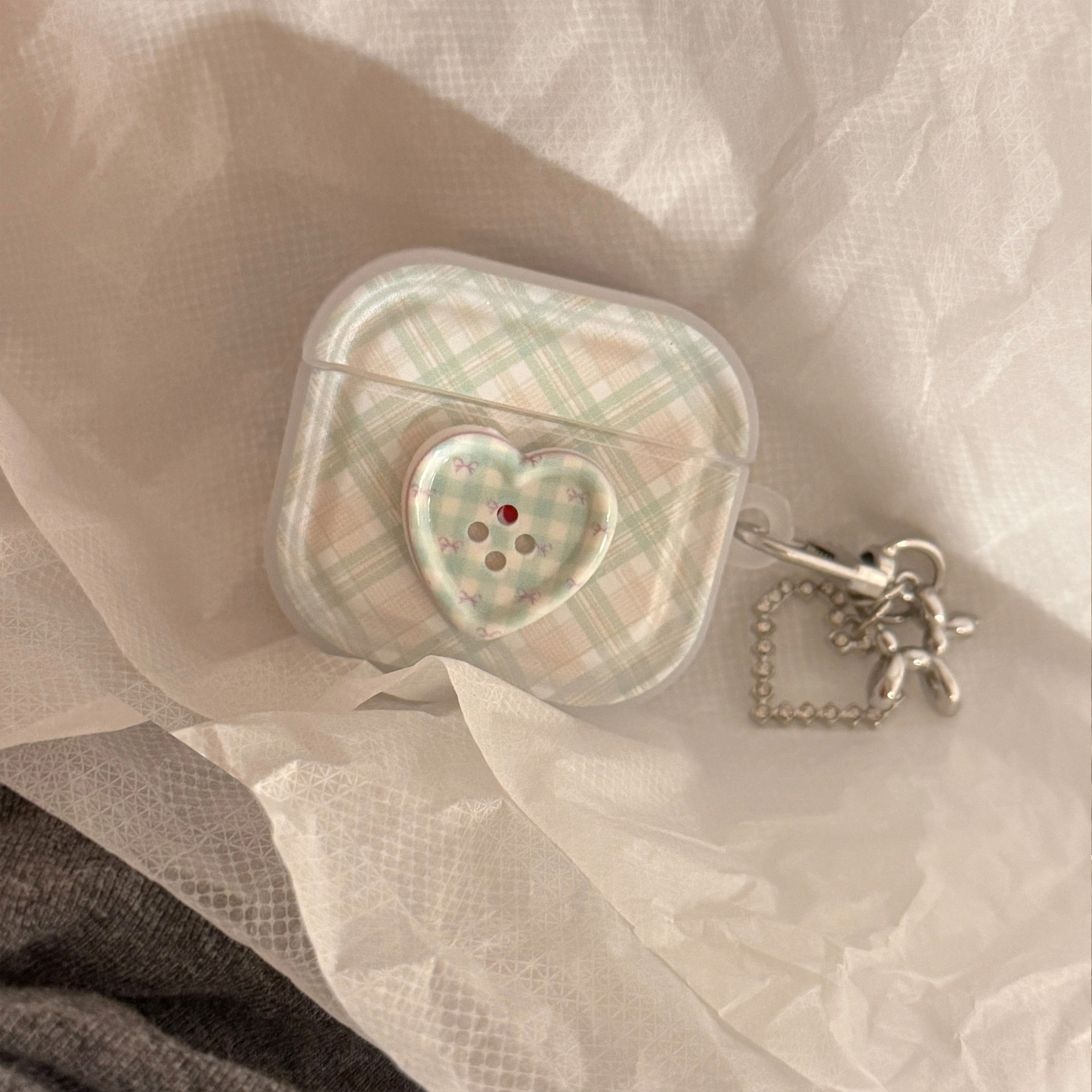 Botón estereoscópico verde para auriculares AirPods Pro2 cubierta Bluetooth inalámbrico 4 generación 1 colgante de plata 3