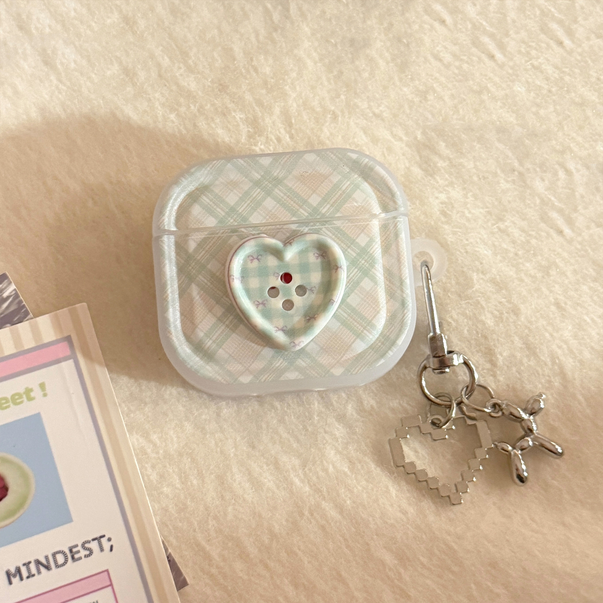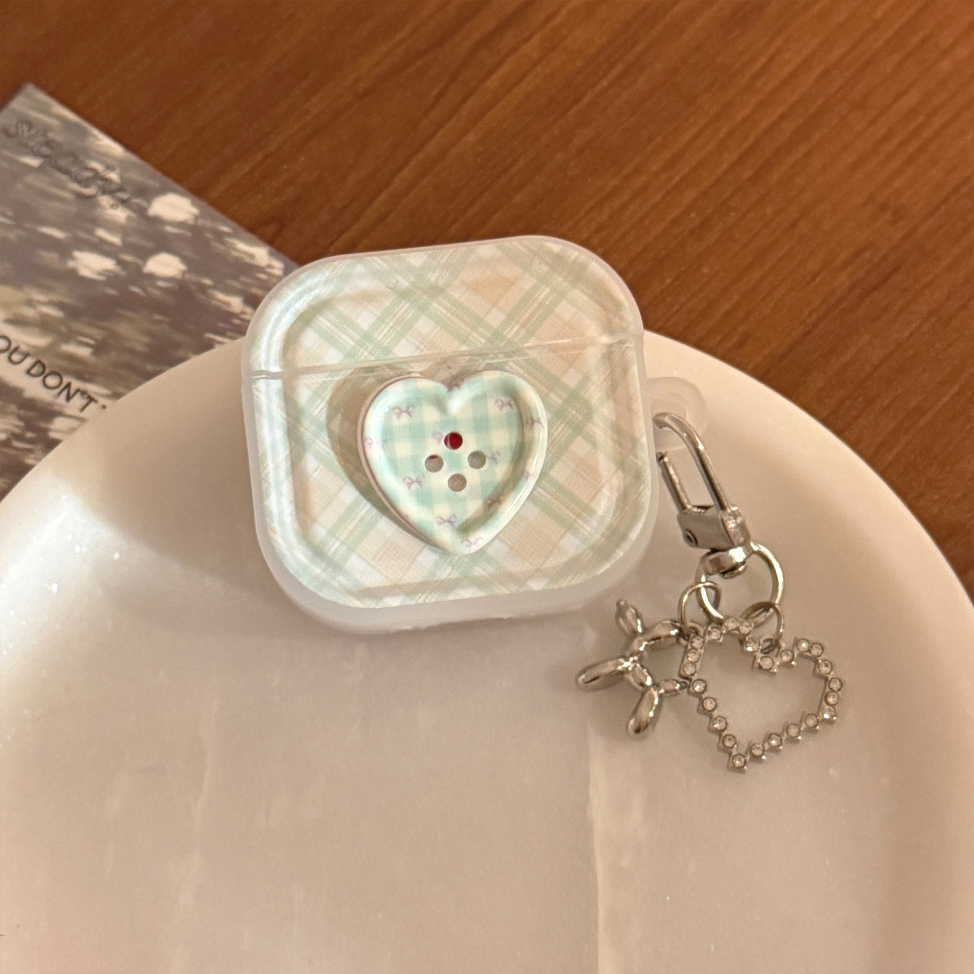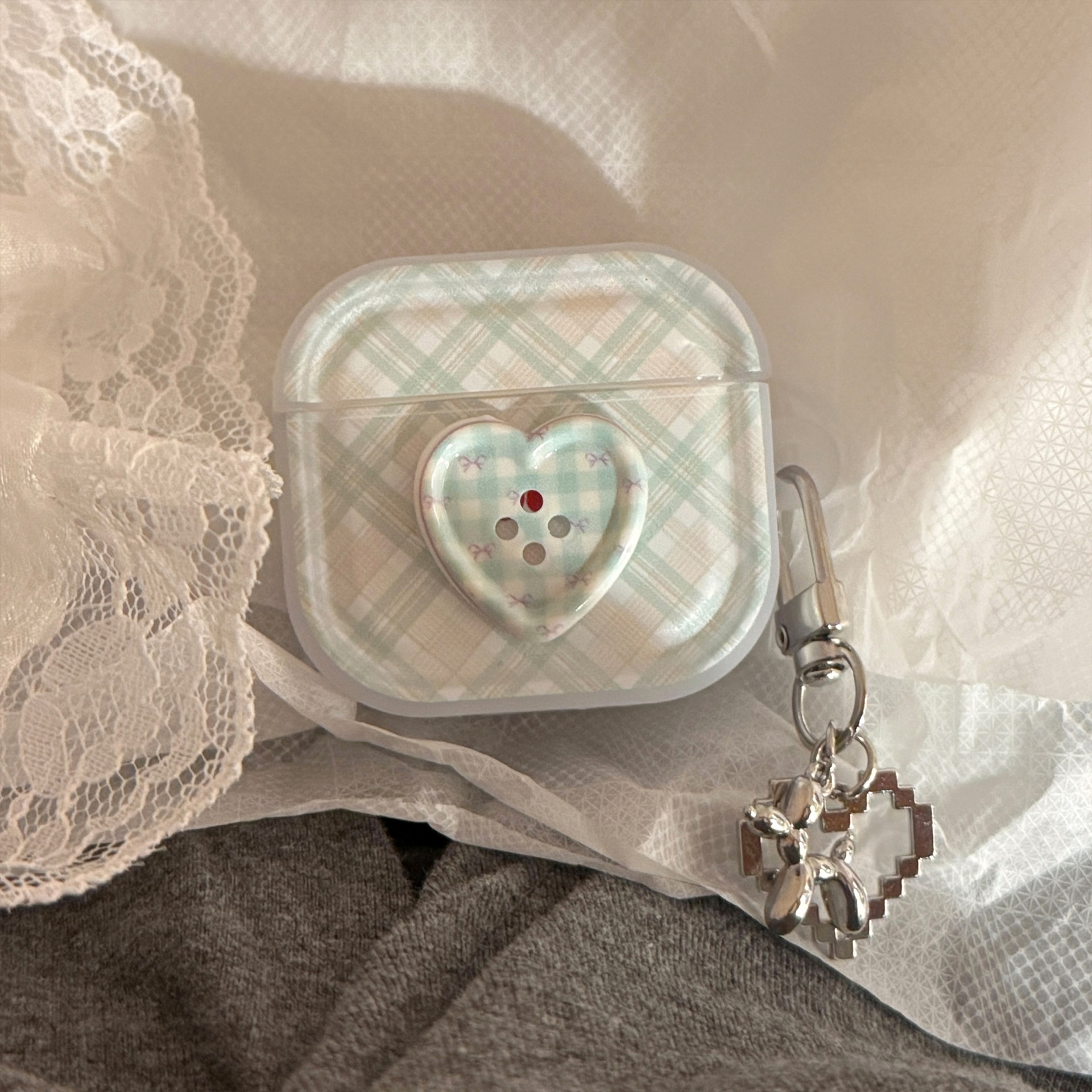 Botón estereoscópico verde para auriculares AirPods Pro2 cubierta Bluetooth inalámbrico 4 generación 1 colgante de plata 3