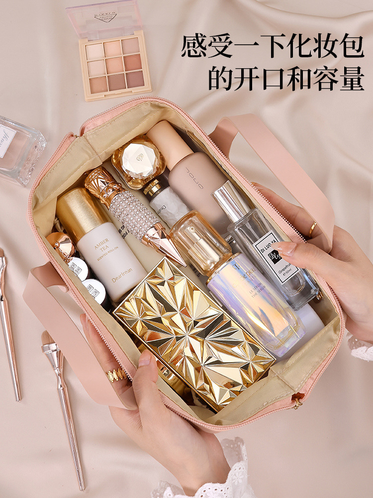 Nueva bolsa de cosméticos, estilo francés grande, alto valor, gran capacidad, sensación de alta gama, cosméticos de PU portátiles, almacenamiento de moda, viaje