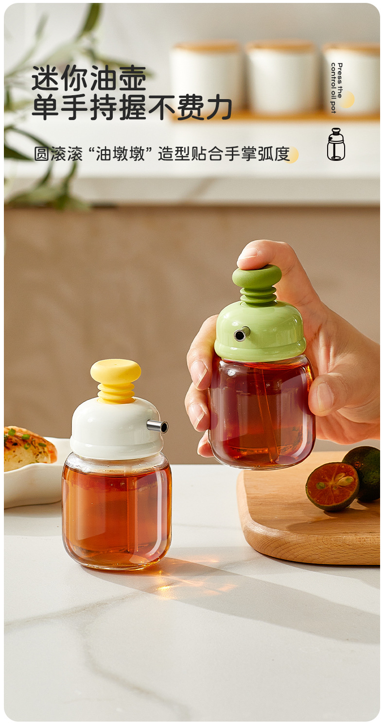 Botella de control de aceite de mini tetera de aceite cuantitativa botella de sabor de vidrio botella de sésamo de presión de cocina botella de vinagre botella de condimento