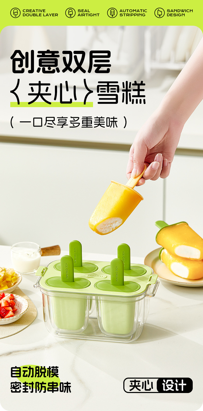 Molde de helado casero molde de helado de doble capa molde de grille de hielo de grado alimenticio DIY artefacto caja de hielo