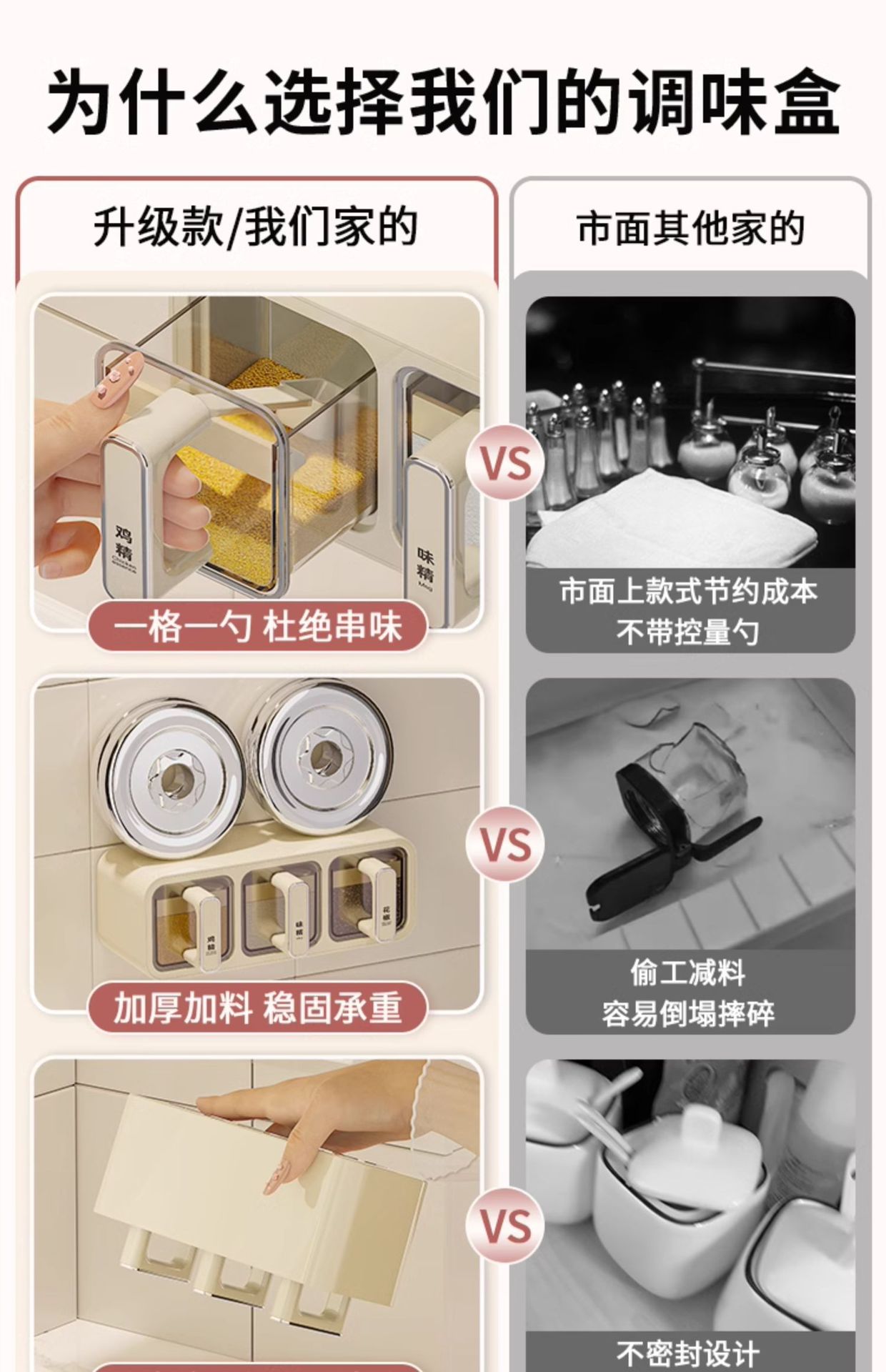 Caja de condimentos Caja de almacenamiento de tanque de condimentos de sal de cocina colgante en la pared Condimentos de alta gama para el hogar Estante de condimentos multifuncional