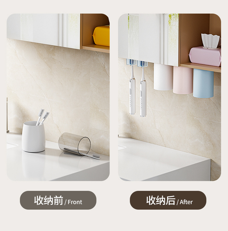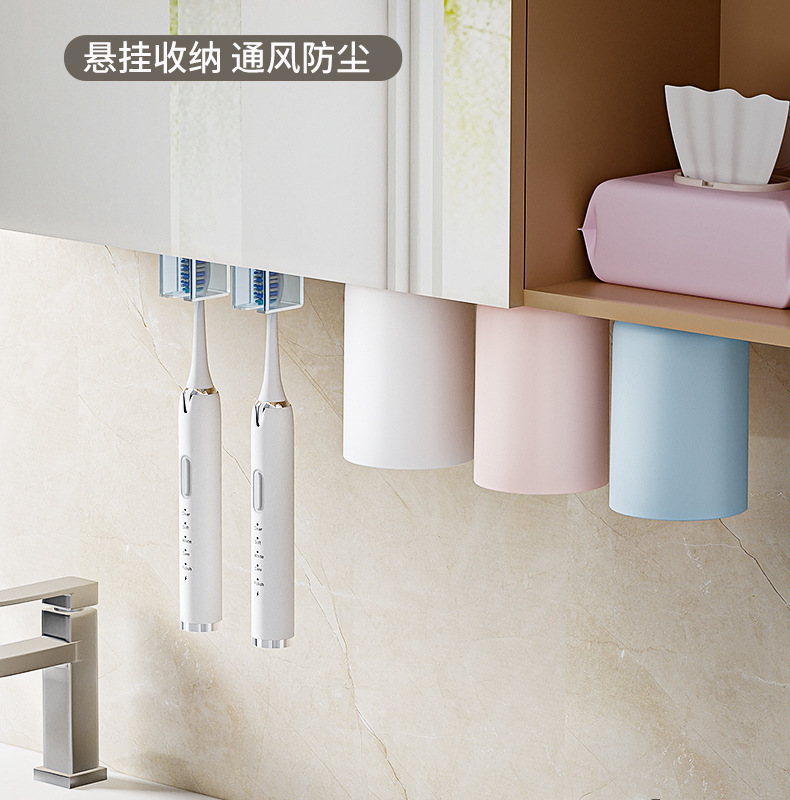 Caja de cepillo de dientes debajo del gabinete de espejo de absorción magnética colgante invertida taza de enjuague bucal taza de dientes colgante colgante de pared inodoro electricidad cepillo de dientes estante