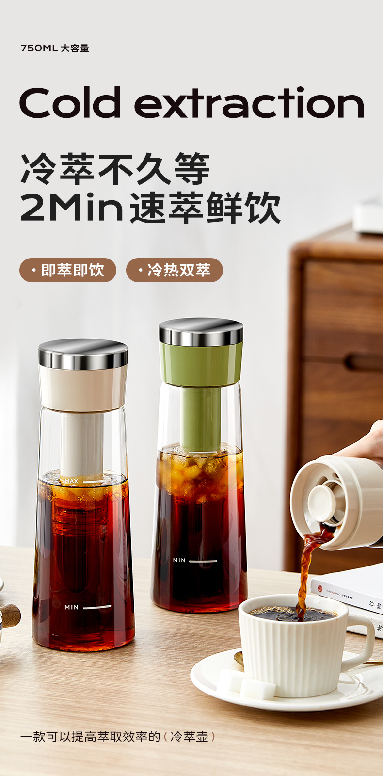 Olla de extracto en frío de excelente alcohol, café prensado con alto borosilicato, tetera en frío, tetera en frío, tetera en frío para llevar al aire libre, tetera en frío, olla de extracto en frío