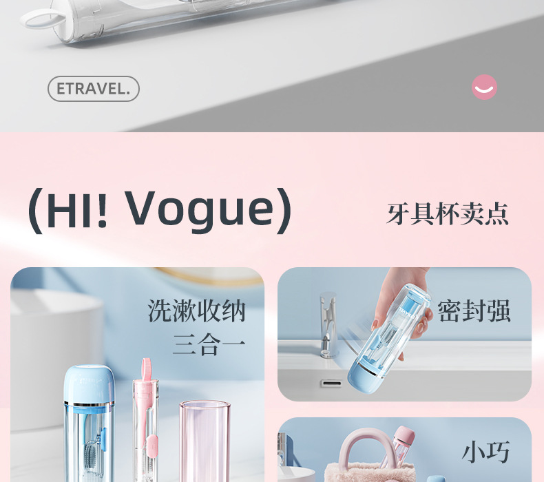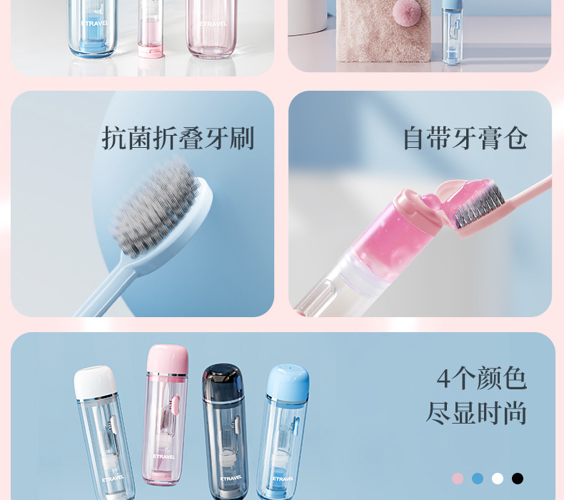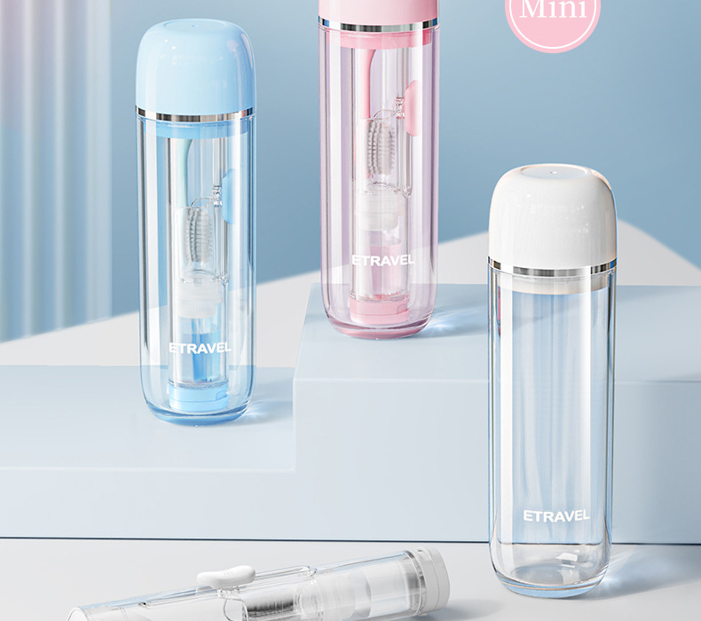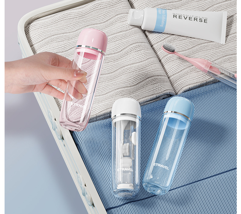 Mini taza de viaje de moda, cepillo de dientes portátil, kit de lavado, caja de almacenamiento de artículos de tocador de viaje, taza de enjuague bucal multifuncional