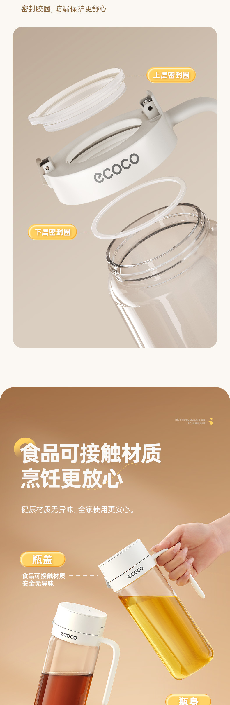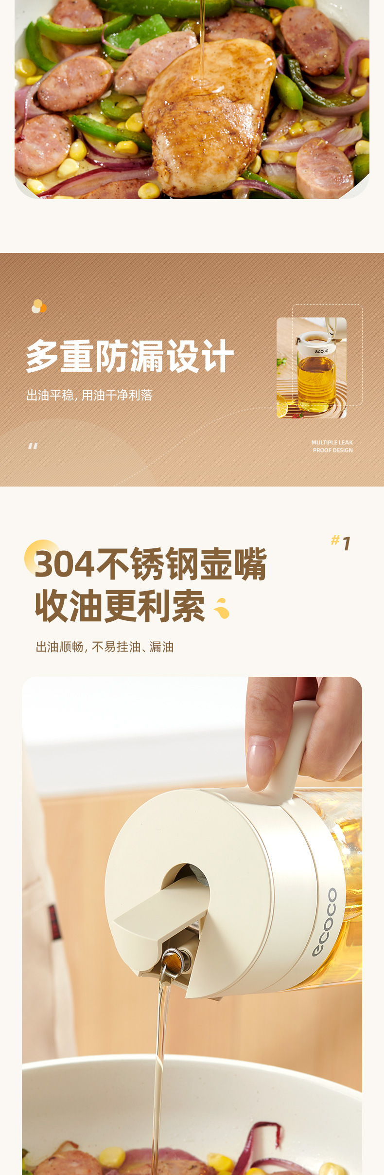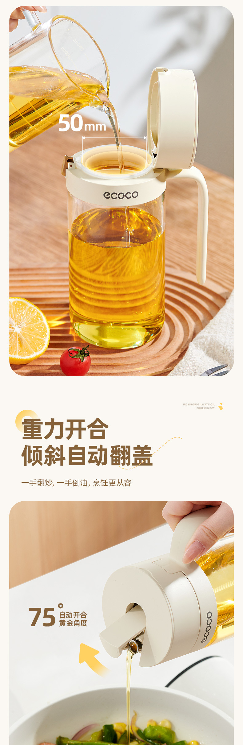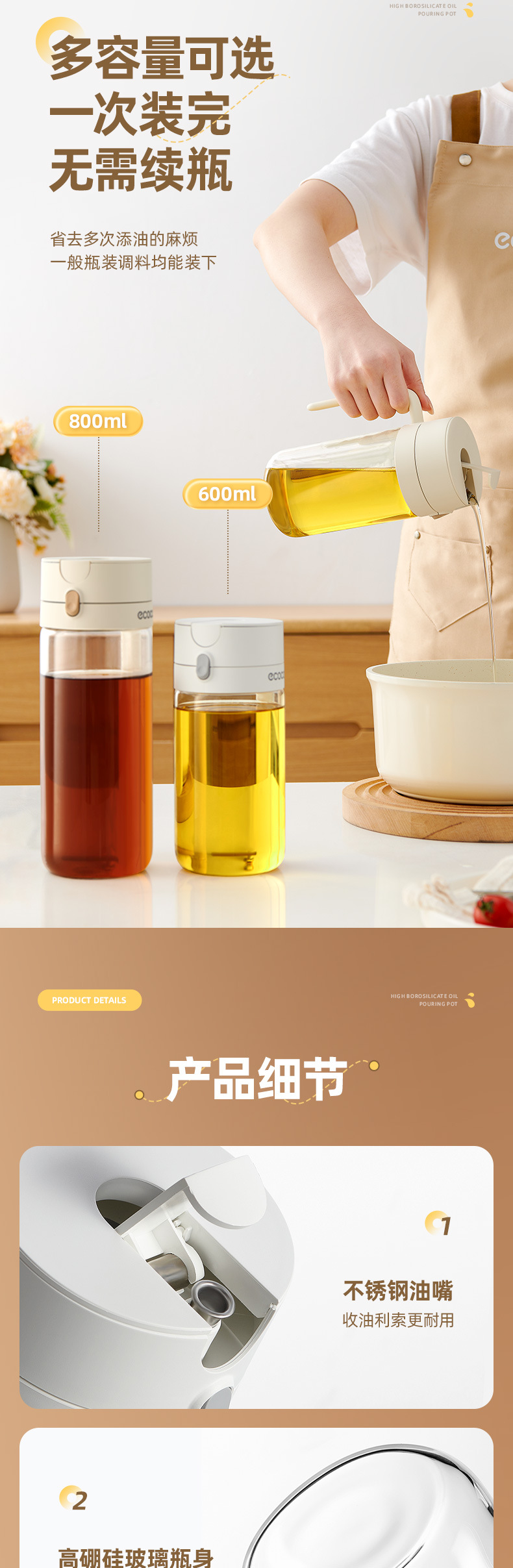 Botella de aceite de vidrio para cocina, botella de aceite doméstica, recipiente de aceite de gran capacidad, botella de condimento de aceite de vinagre, botella de condimento de aceite a prueba de fugas, botella de aceite de vinagre