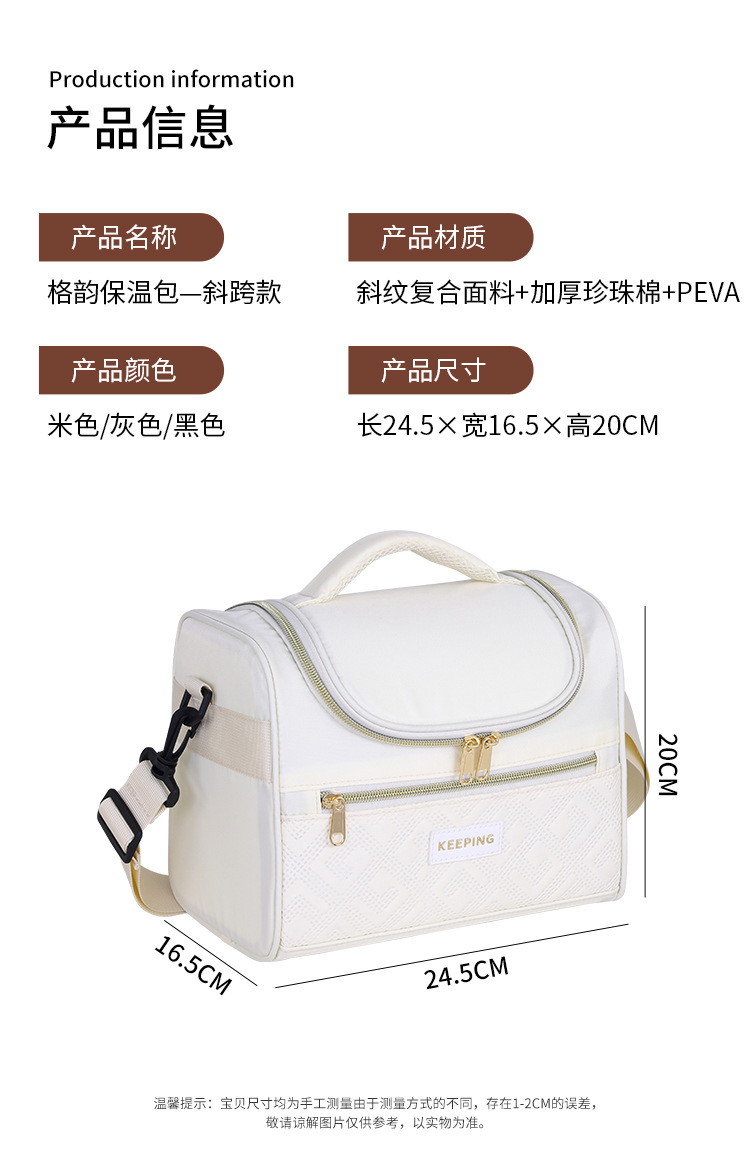 Serie Ge Yun Bolsa de lonchera diagonal de un solo hombro Bolsa de almuerzo para trabajadores de oficina Bolsa bento para almacenamiento de leche Bolsa de aislamiento de picnic engrosada de un solo hombro