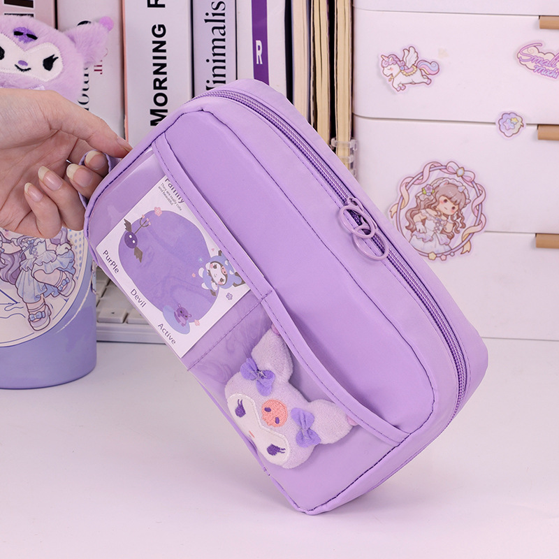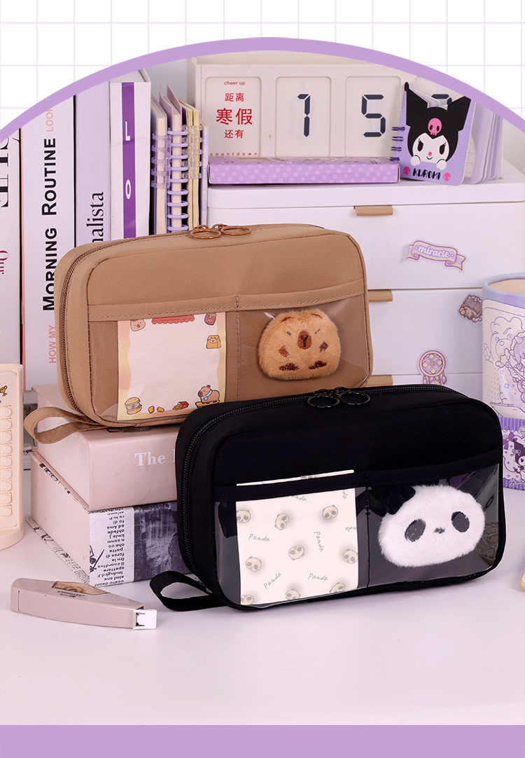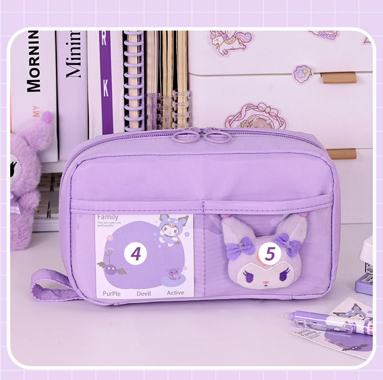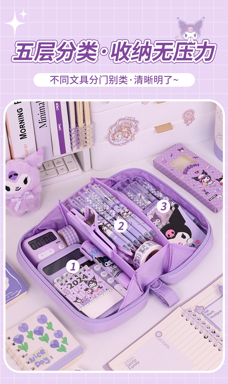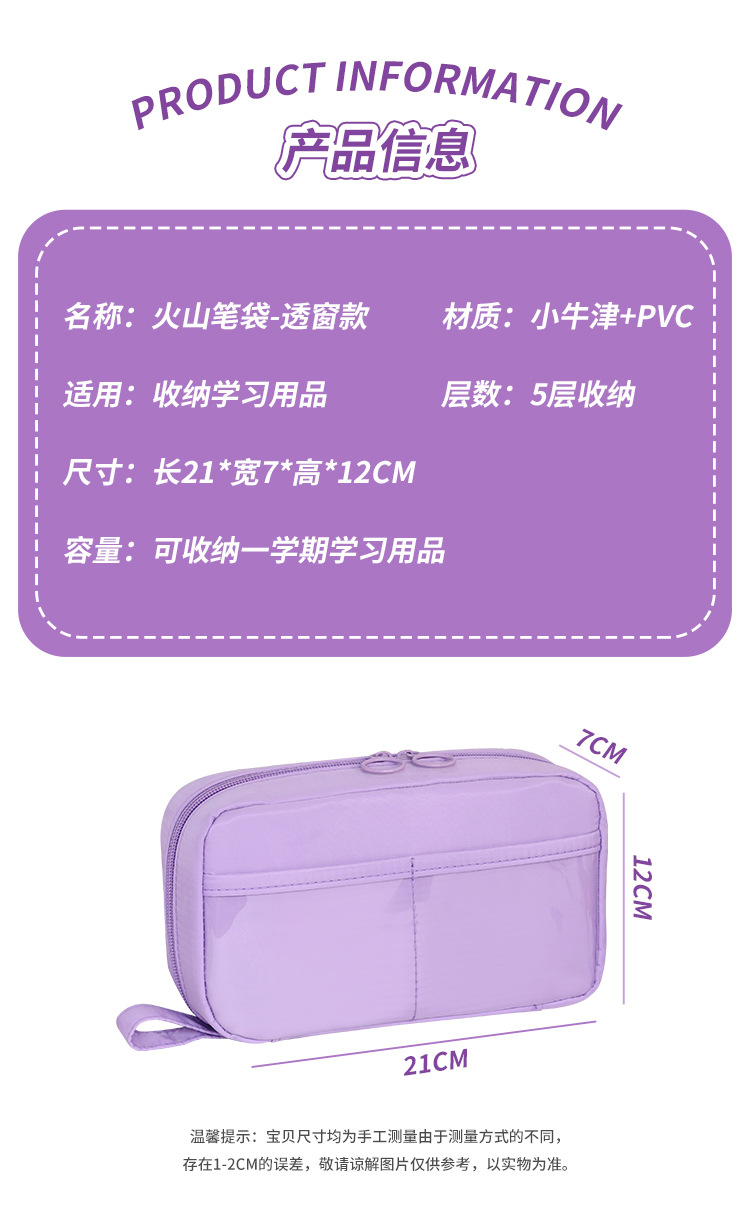 Bolso de lápices volcánico transfronterizo de 5 capas Bolso de lápices de estilo simple para estudiantes de escuela primaria Bolso de papelería resistente a las manchas de gran capacidad Estilo ins de alto valor