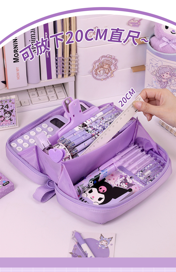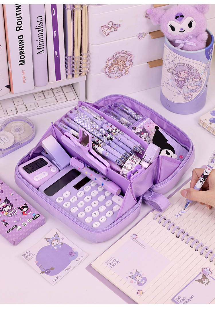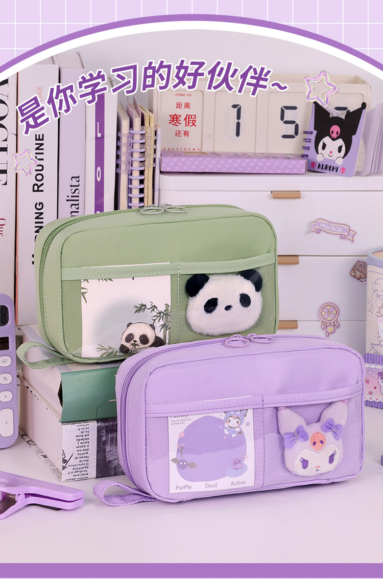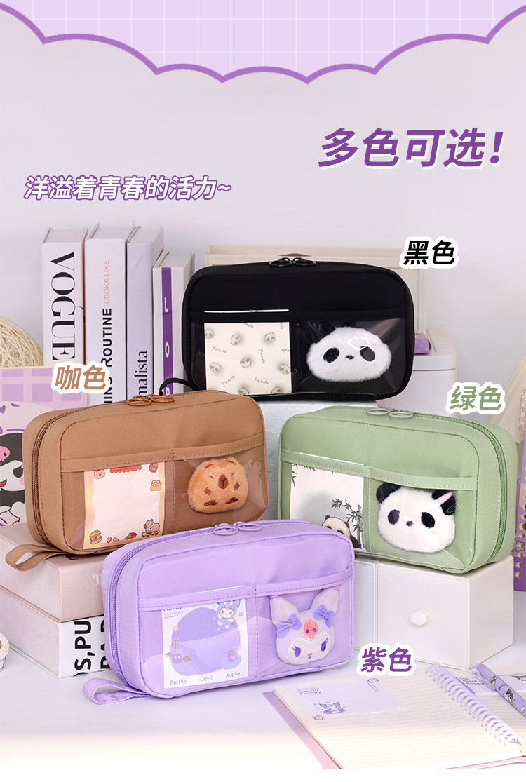 Bolso de lápices volcánico transfronterizo de 5 capas Bolso de lápices de estilo simple para estudiantes de escuela primaria Bolso de papelería resistente a las manchas de gran capacidad Estilo ins de alto valor