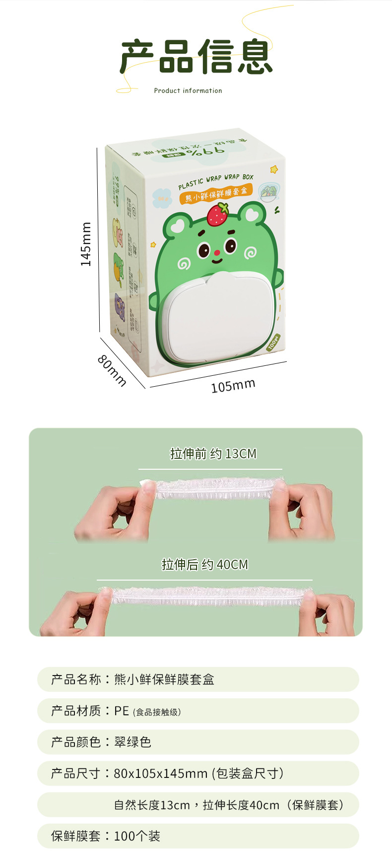 Caja de cubierta de película de preservación fresca de oso pequeño (se puede colgar en la pared)