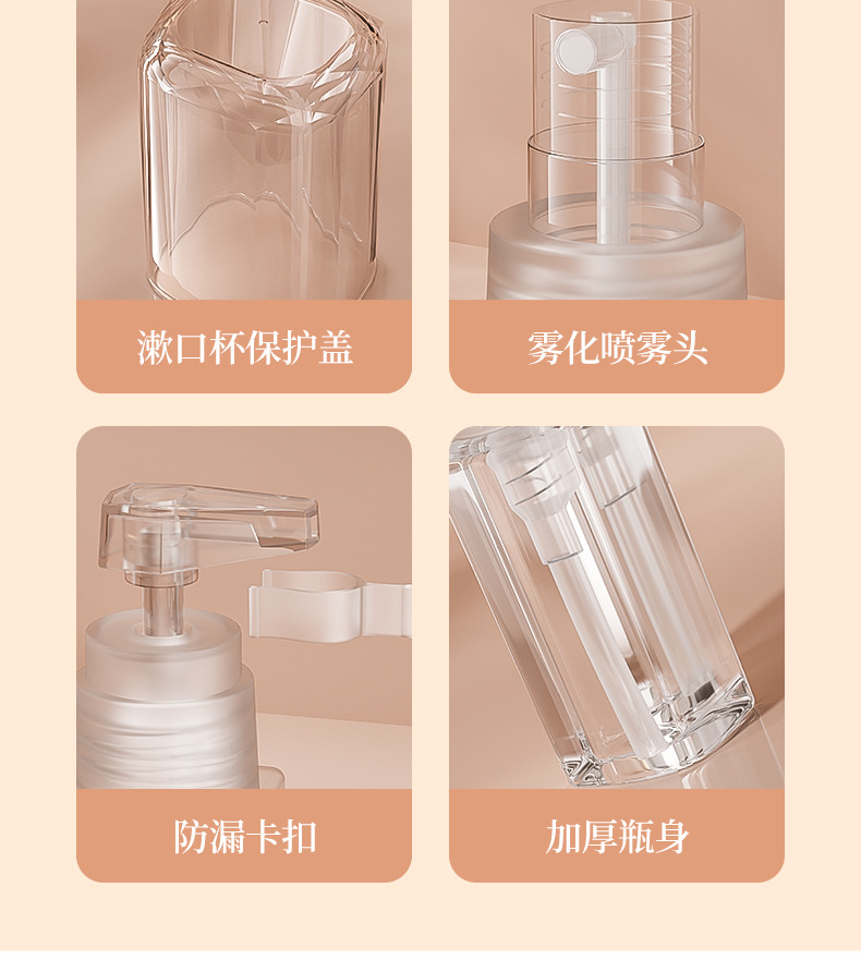 Botella de viaje de vacío prensado portátil 4 en 1 botella de almacenamiento de botella de pulverización transparente ligera de lujo conjunto de botella de emulsión