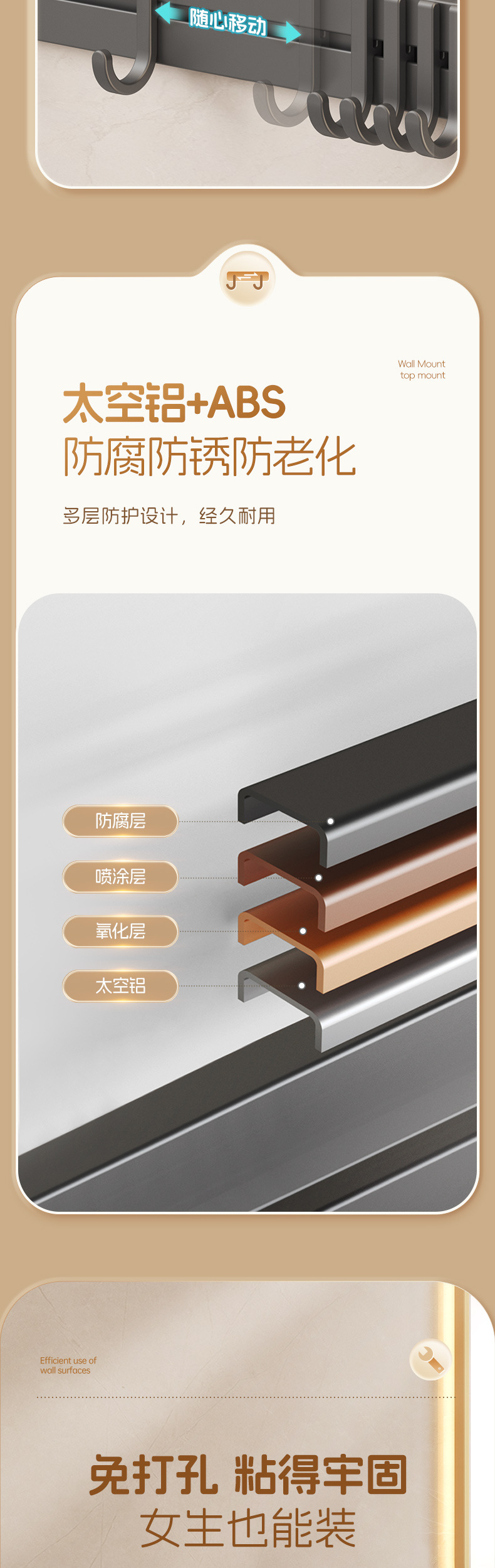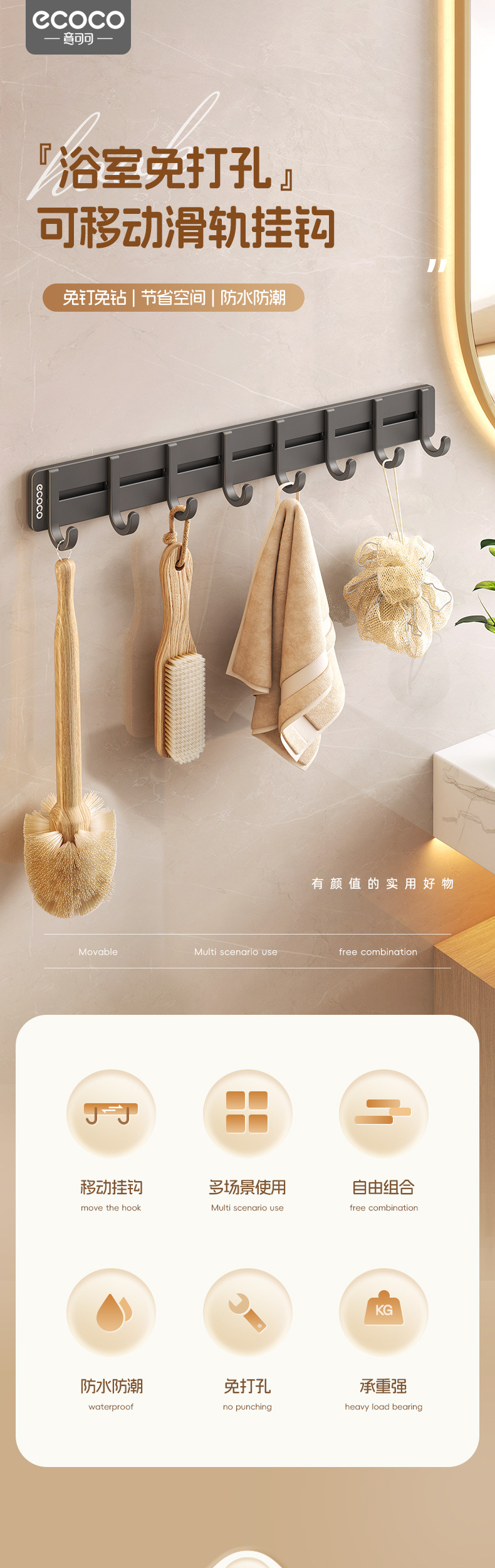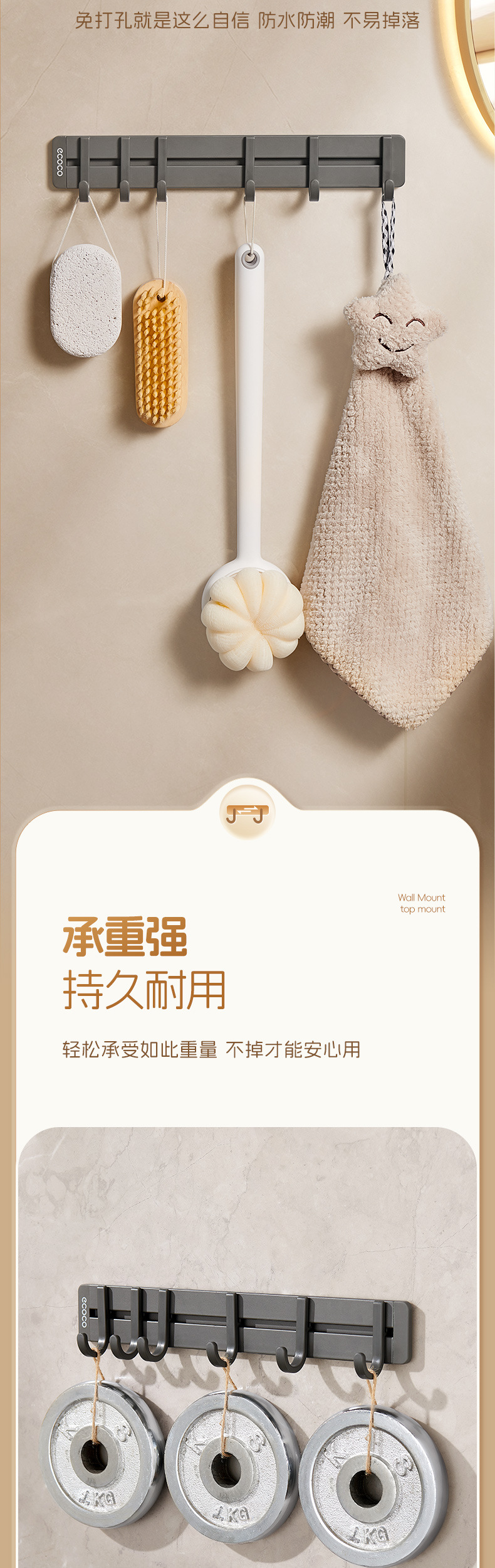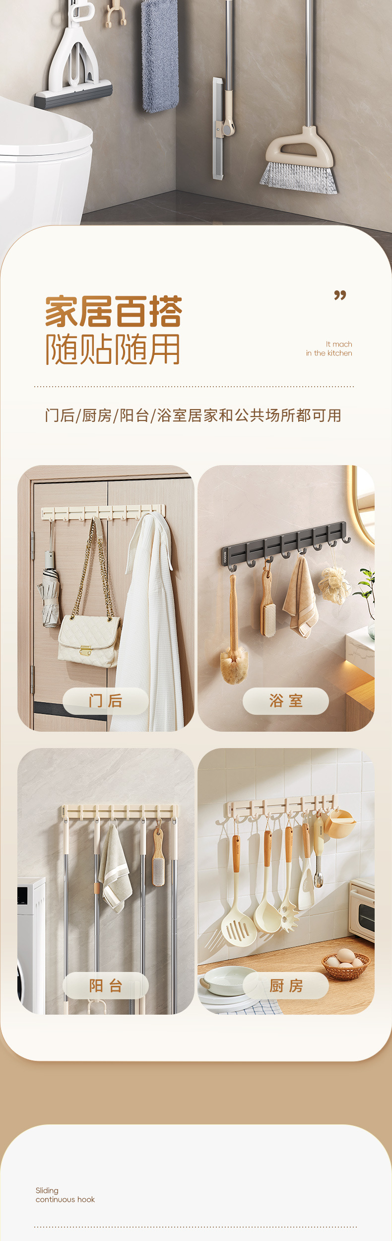 Gancho continuo sin perforación fuerte estante de baño móvil gancho adhesivo puerta colgante de ropa colgante de cocina colgante de baño