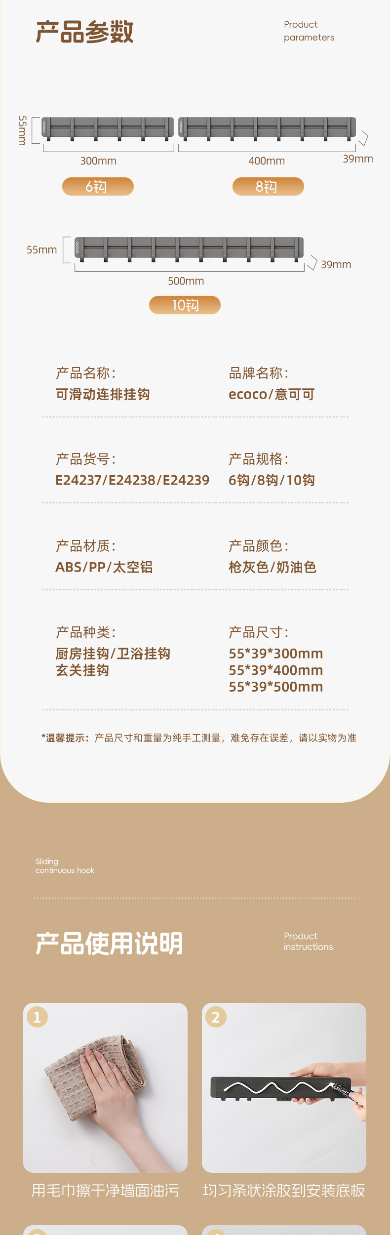 | Color | Gris de la pistola 30cm [6 ganchos], color crema 30cm [6 ganchos], gris de la pistola 40cm [8 ganchos], color crema 40cm [8 ganchos], gris de la pistola 50cm [10 ganchos], color crema 50cm [10 ganchos] |